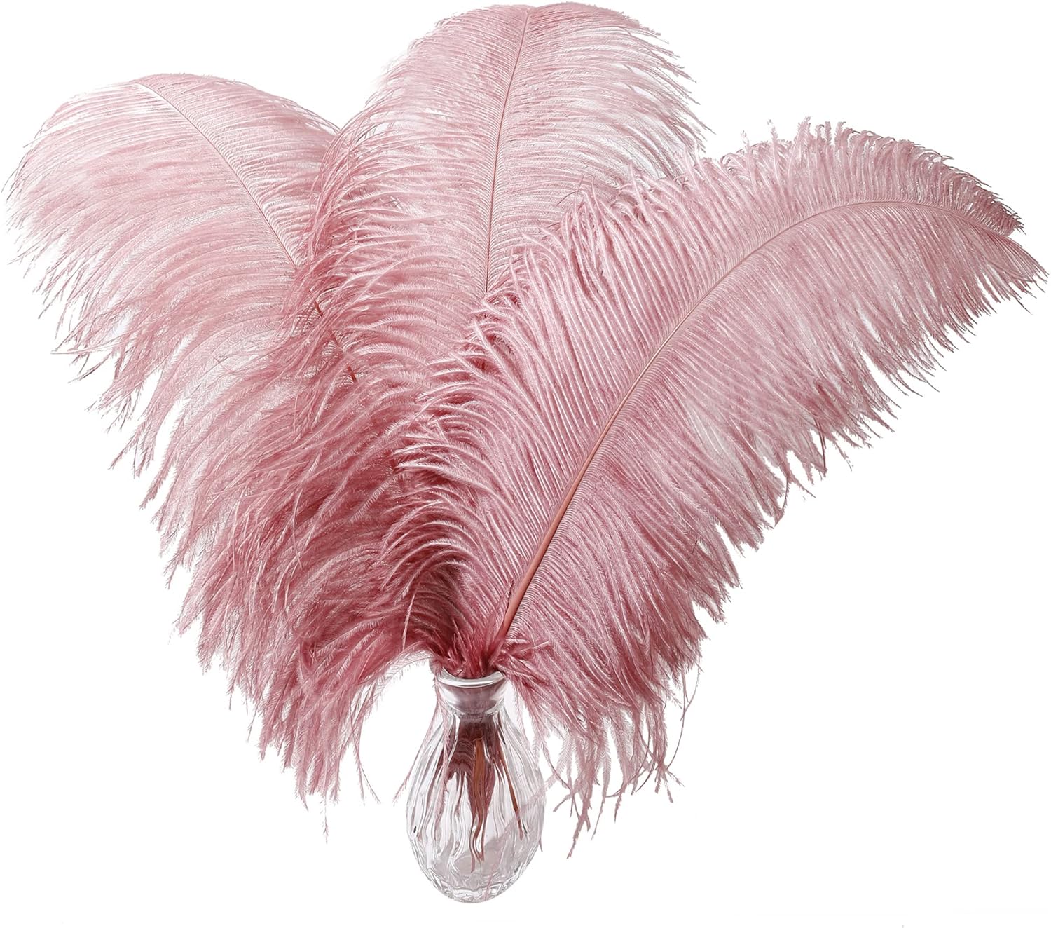 Larryhot Pink Ostrich Feathers Bulk- 16-18 inch 10pcs Feathers for Cfafts,Wedding Party Centerpieces, and Home Decorations (Lotus Pink)