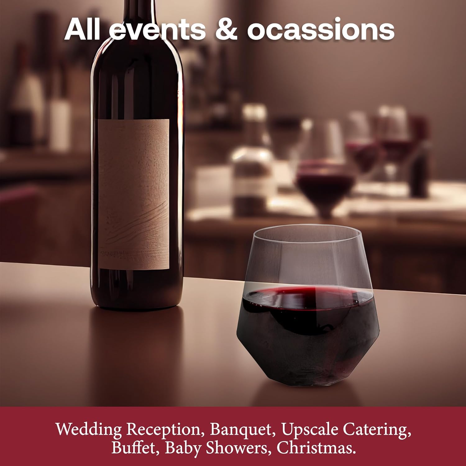 • VERSATILE FOR ALL BEVERAGES – Perfect as stemless wine glasses or for cocktails and other beverages, these plastic wine glasses are suitable for both casual and formal gatherings.
