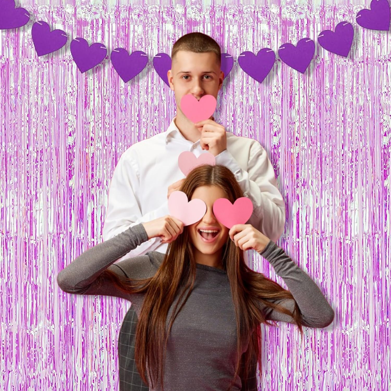 BRAVESHINE Clear Purple Party Decorations Iridescent Foil Curtain - 2 Pack 3.2 x 6.5 ft Holographic Tinsel Backdrop Party Streamers Curtains for Birthdays Valentine’s Bachelorette Bridal Shower Decor