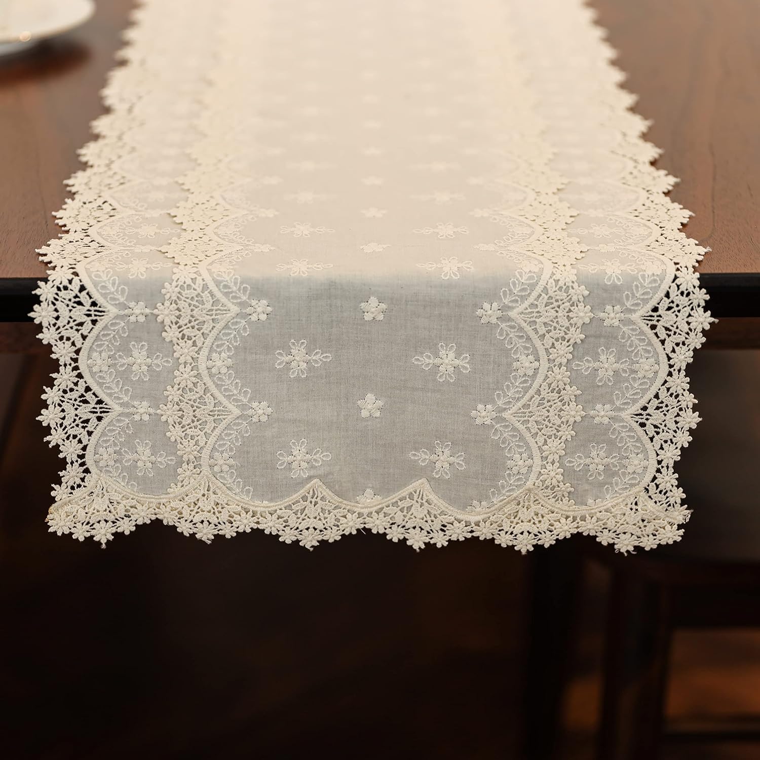 Inicia Cotton Lace Table Runner 12 × 86 inch Embroidered for Easter Holiday Wedding Picnic Daily Dining Tables White Decor (Cotton, 12"×86" (31cm×220cm))
