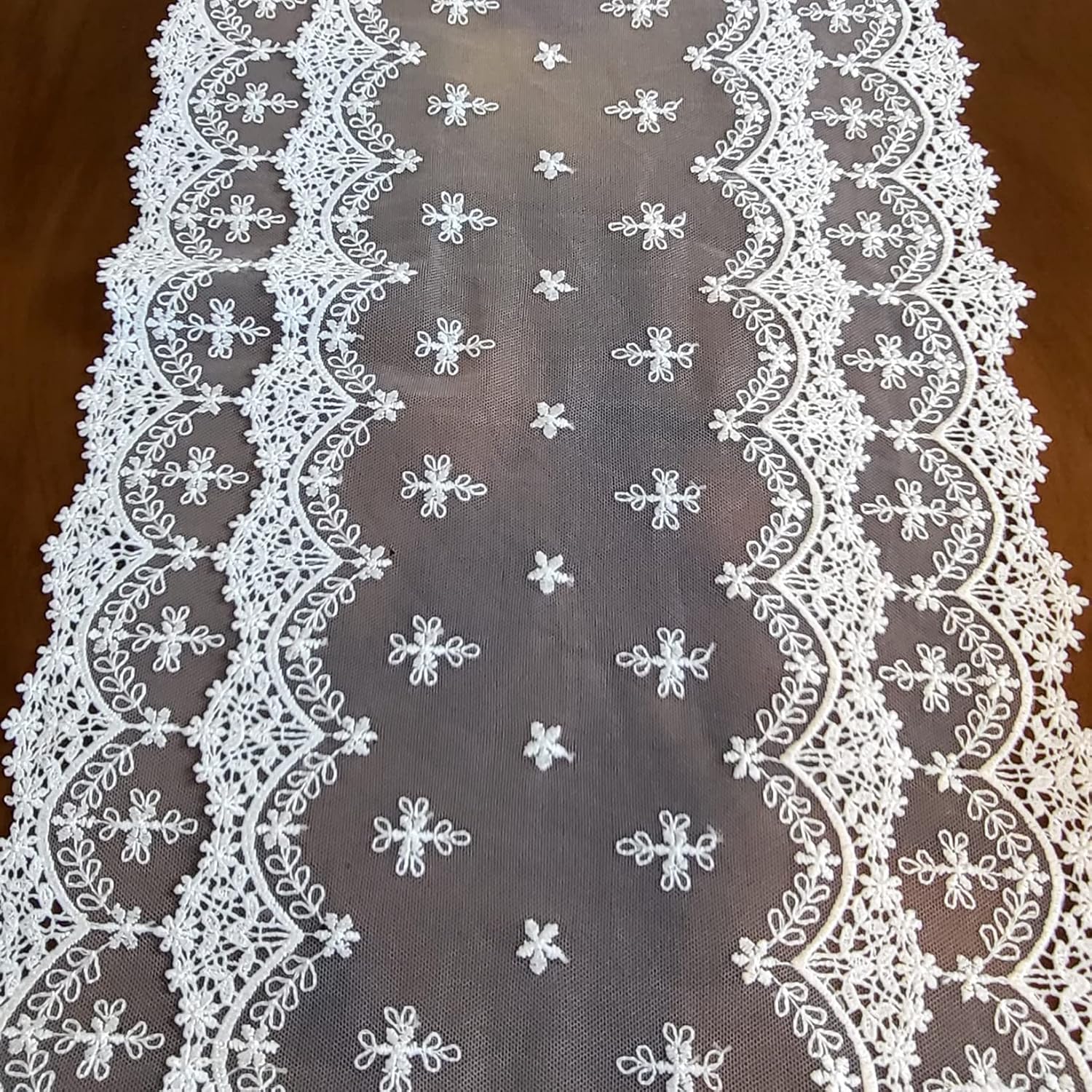 Inicia Table Lace Runner 12×50 inch Embroidered for Holiday Wedding Picnic Daily Dinner Tables White Decor (Polyester, 12"×50" (31cm×130cm))