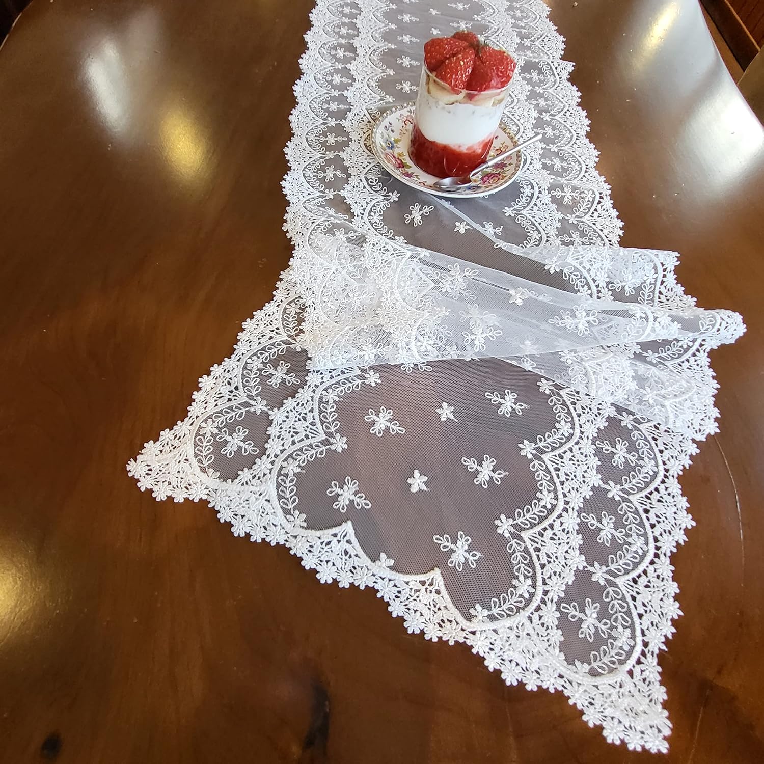 Inicia Table Lace Runner 12×86 inch Embroidered for Holiday Wedding Picnic Daily Dinner Tables White Decor (Polyester, 12"×86" (31cm×220cm))