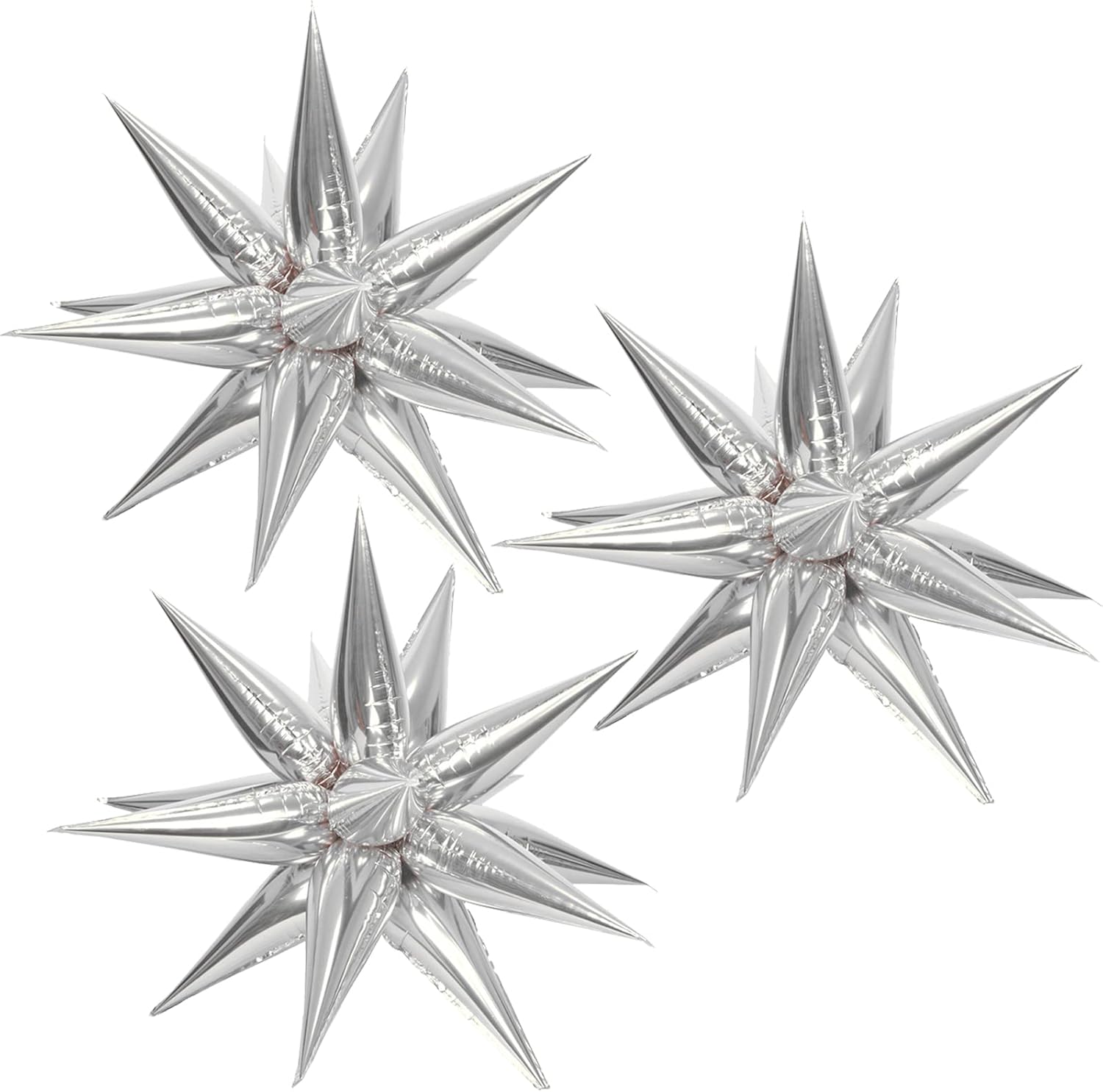3pcs 26inch 3D Explosion Star foil balloon, Silver Foil Cone Star burst Balloons for Birthday Wedding New Year Party Event