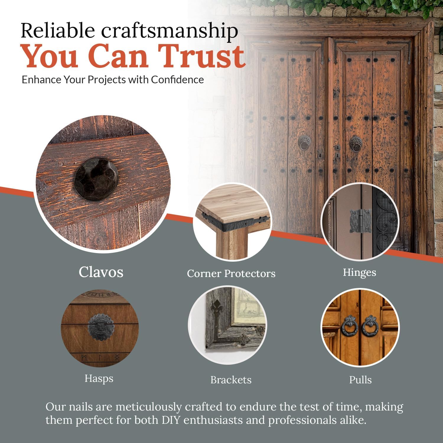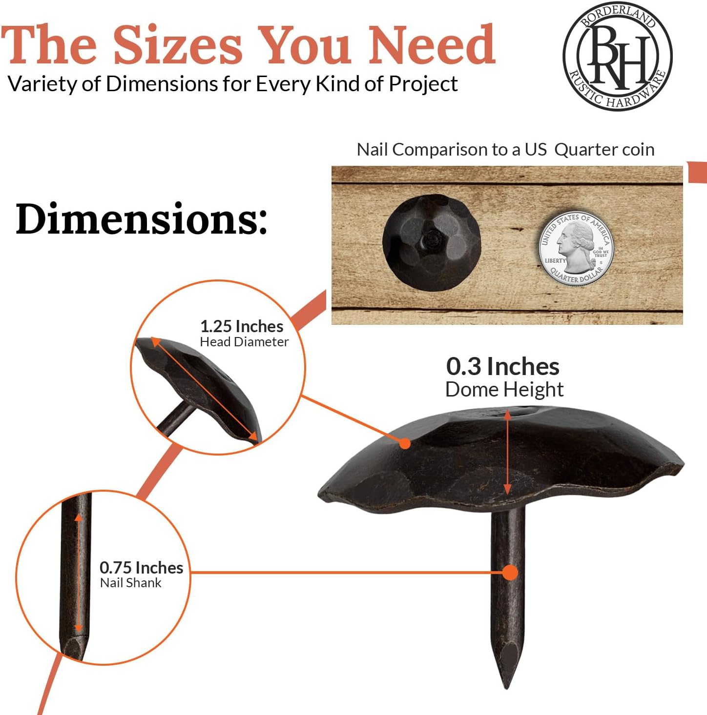 50 Pack 1.25" Round Head Iron Clavos Decorative Nails – Sealed Unfinished – Handmade Rustic Round Fasteners for Farmhouse Shutters, Faux Wood, Barn Doors, Shutters, Gates – Ornamental Wood Accent