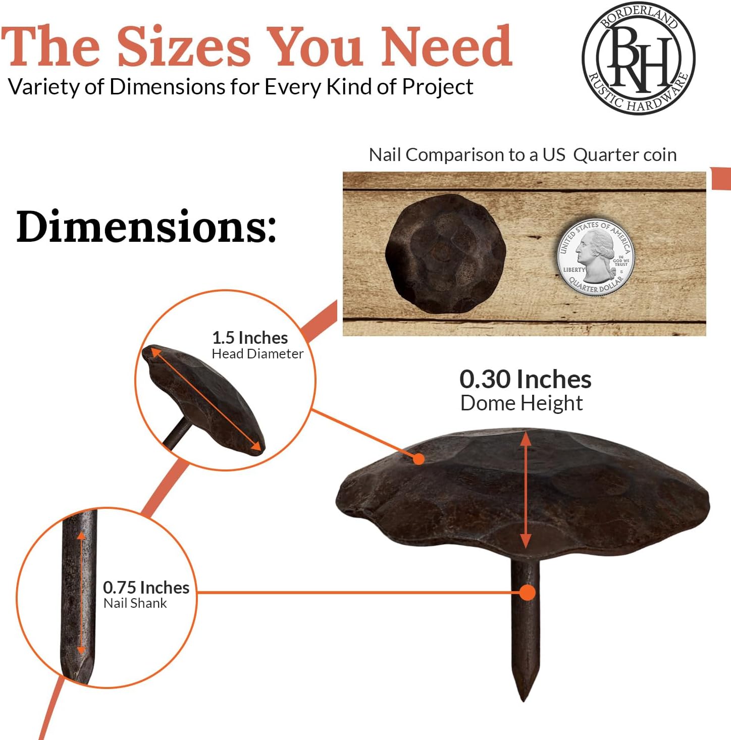 10 Pack 1.5" Round Head Iron Clavos Decorative Nails – Unfinished – Handmade Rustic Round Fasteners for Farmhouse Shutters, Faux Wood Beams, Barn Doors, Shutters, Gates – Ornamental Wood Accent