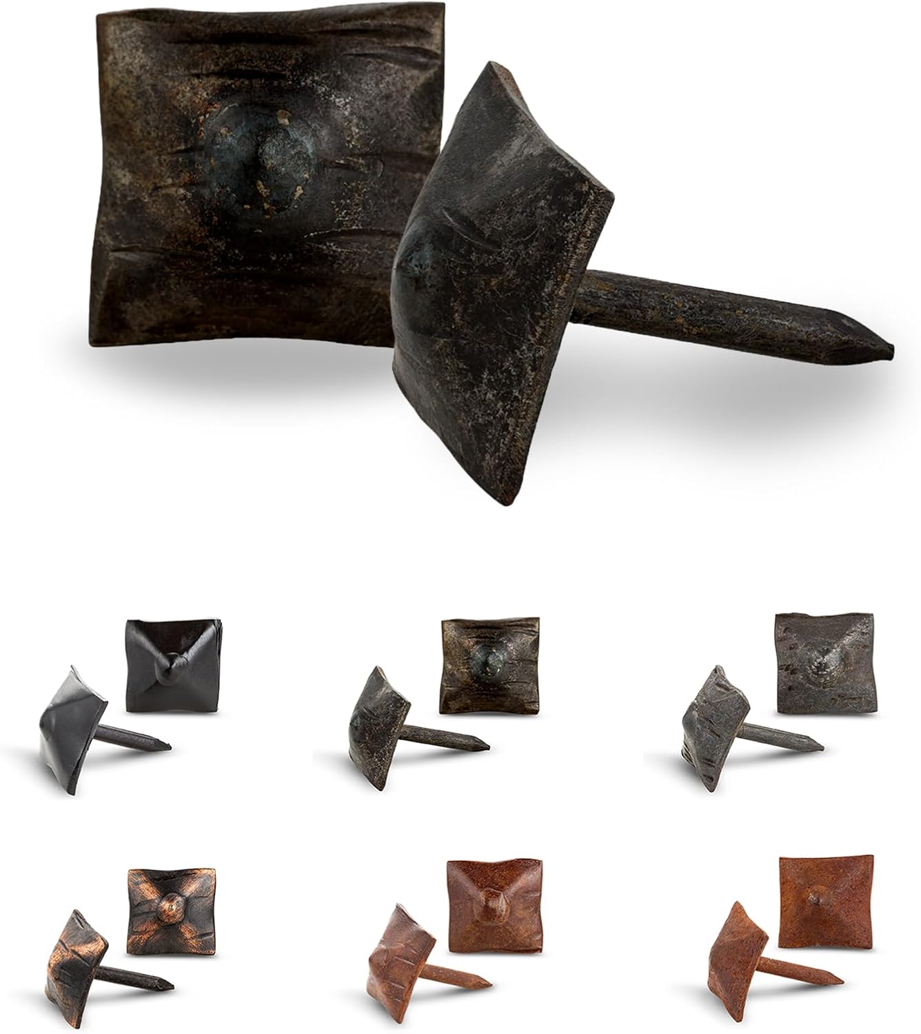 10 Pack 0.75" Square Head Iron Clavos Decorative Nails – Sealed Unfinished – Handmade Rustic Square Fasteners for Farmhouse Shutters, Barn Doors, Shutters, Gates – Ornamental Wood Accent