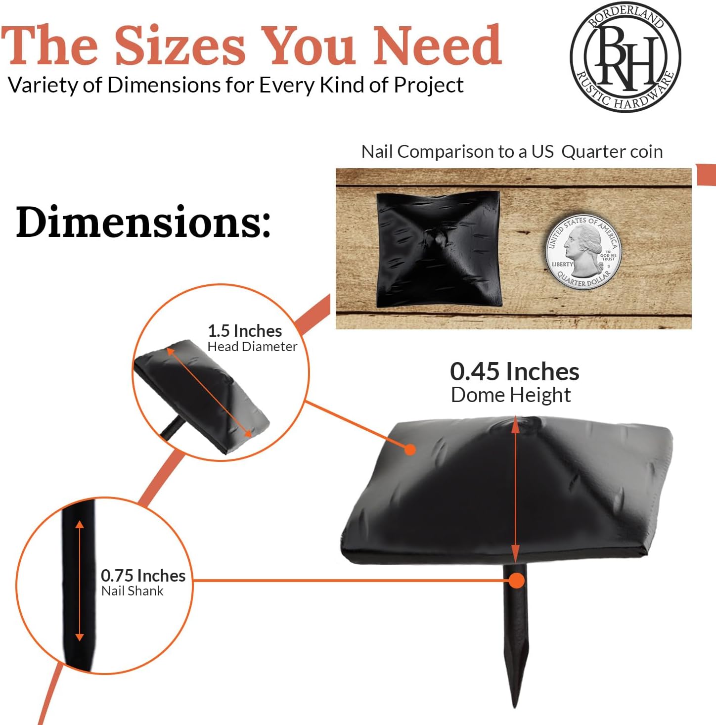10 Pack 1.5" Square Head Iron Clavos Decorative Nails – Black – Handmade Rustic Square Fasteners for Farmhouse Shutters, Faux Wood Beams, Barn Doors, Shutters, and Gates – Ornamental Wood Accent