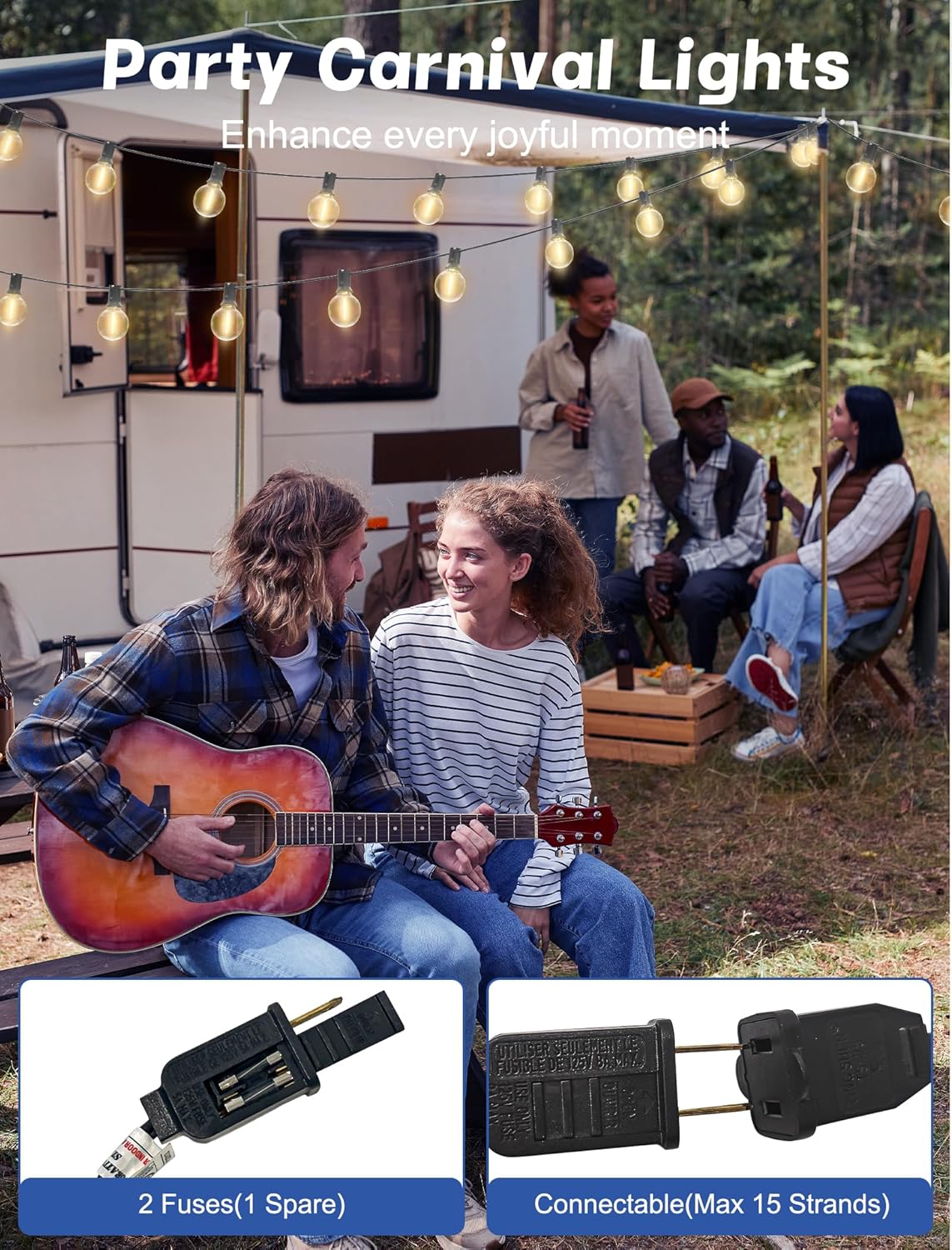 • End to End Design: Globe led string lights are 12" lead with male plug, 24" spacing between bulbs, 12" tail with female connector, total length 100 feet. G40 led patio string light is end to end connectable, it can be connected up to 14 strands to light up larger space
