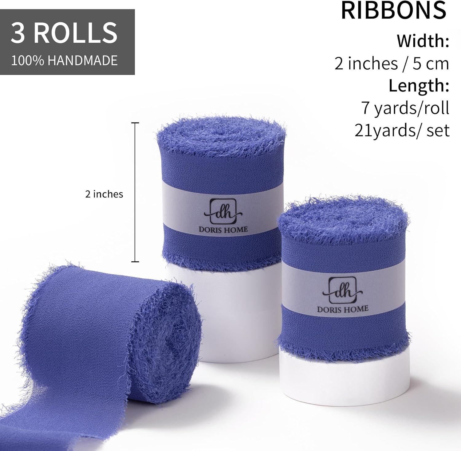 • 【Size and Color】Each roll of chiffon ribbon is 2 inches wide and 7 yards long, perfect for various creative uses such as making bows, decorating wreaths, and DIY crafts. This set includes 3 rolls electric blue ribbons. These vibrant frayed ribbons add a rustic charm to your creations, ideal for bouquet wrap or gift ribbon.