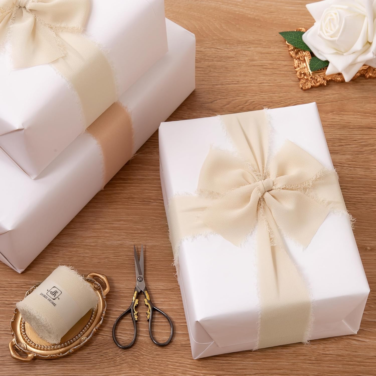 • 【Multiple Applications】This chiffon silk ribbon is great for gift wrapping, wedding decorations, wedding invitations, birthday parties, holiday celebrations, bridal showers, newborn photography props, wedding aisle backgrounds, boutonnieres, flower girl baskets, bouquet wrapping ribbons, Easter baskets, and even Christmas gift wrapping. Its elegant appearance makes it an ideal choice for bohemian or rustic DIY projects.