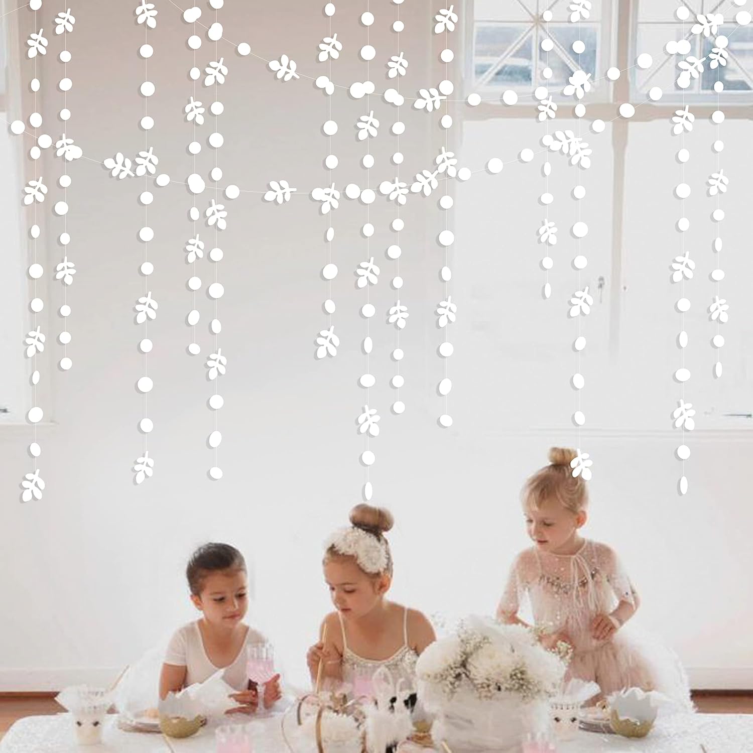 • 🤍PACKAGE CONTAINS-4 packs of white leaf polka dot paper garland,each string is 13 feet/ 4 meters.Total length is 52 feet/ 16 meters.