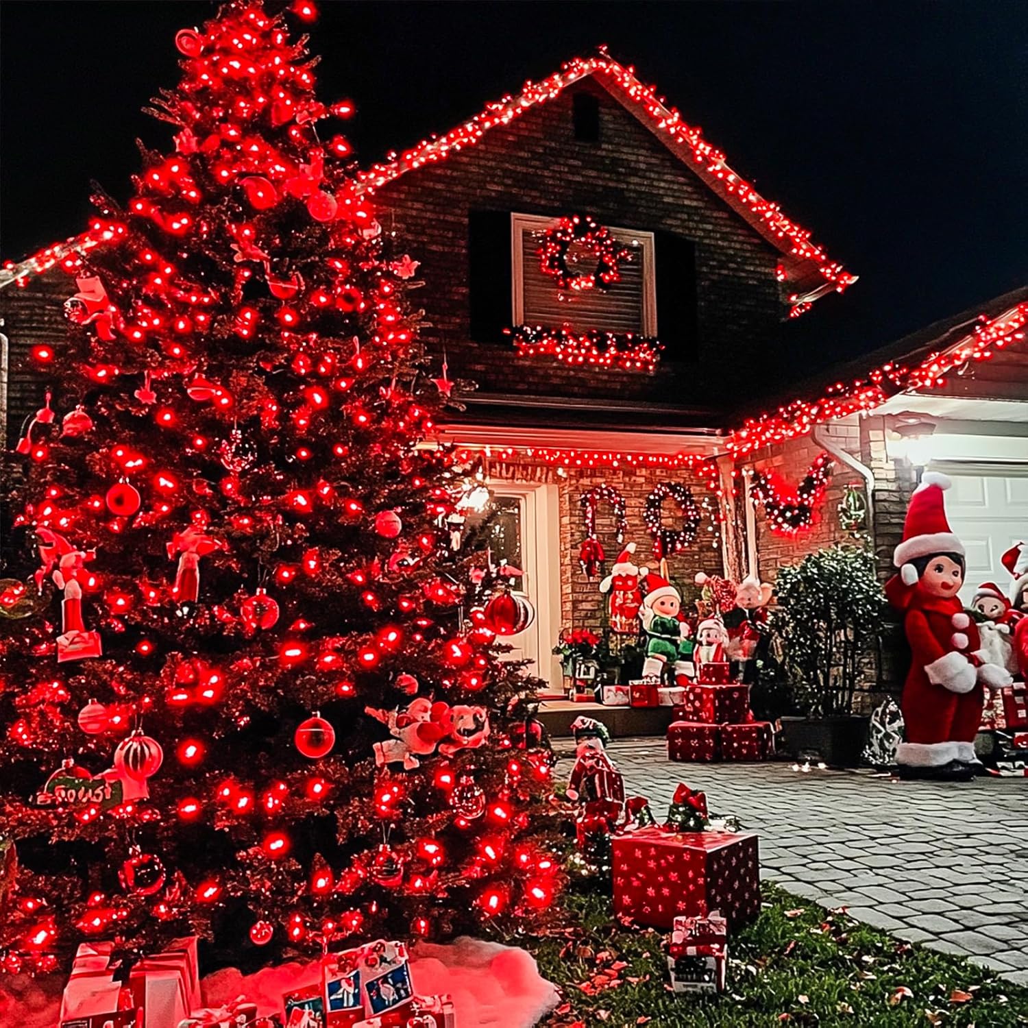 • Remote Control & Dimmable: Our outdoor red Christmas lights come up with wireless remote, it's convenient for you to adjust brightness. The perfect function of adjusting light is really a big surprise. 4 level brightness adjustment (100%, 75%, 50%, 25%), you can also be adjusted according to tree, fireplace, beaches, yards, fences, patio, garden, etc