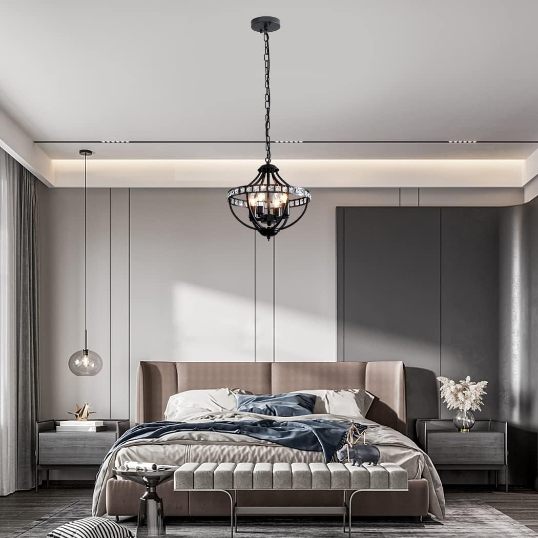 • ☀ Crystal Chandelier: This 4-Light black crystal chandelier is made of iron artisanal finish, features crystal tube is shiny, crystal home decor. It's the focal point of your home renovation, you'll absolutely fall in love with it.features crystal tube is shiny, crystal home decor