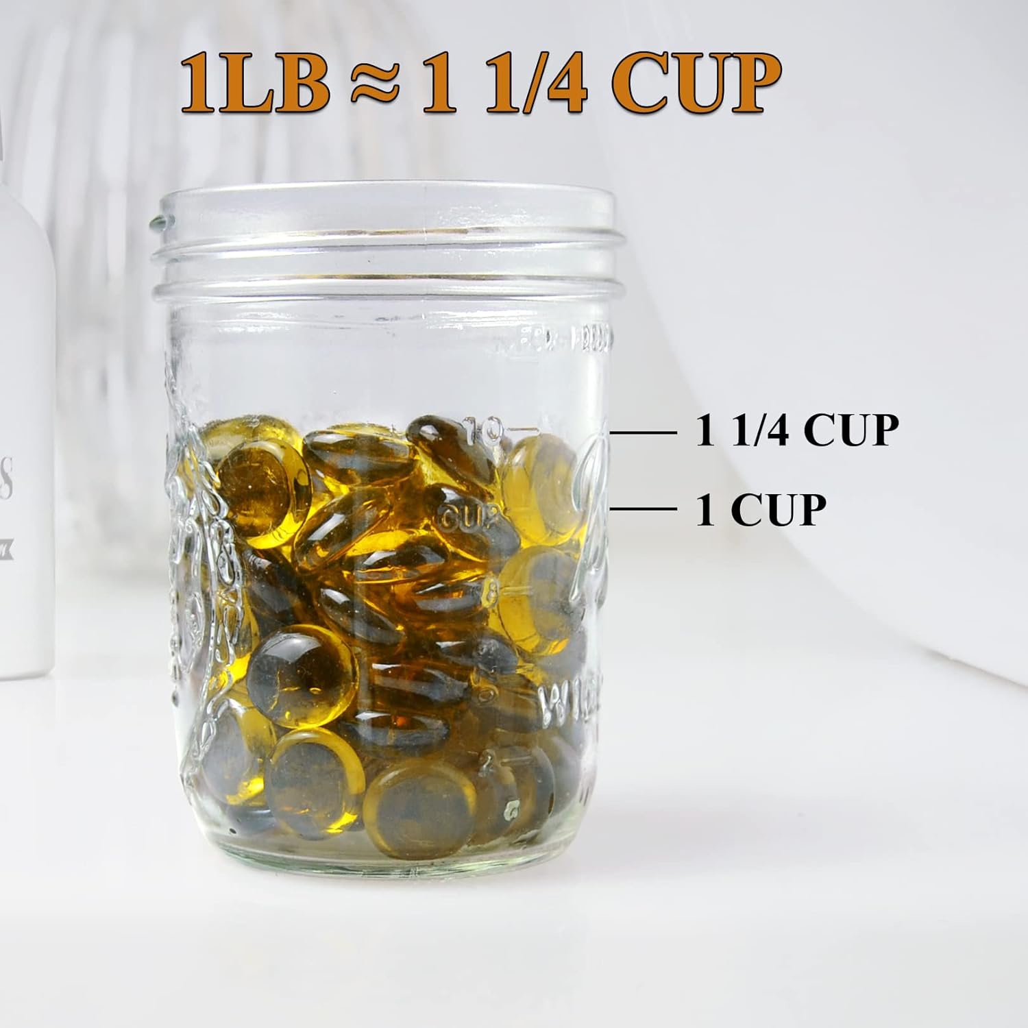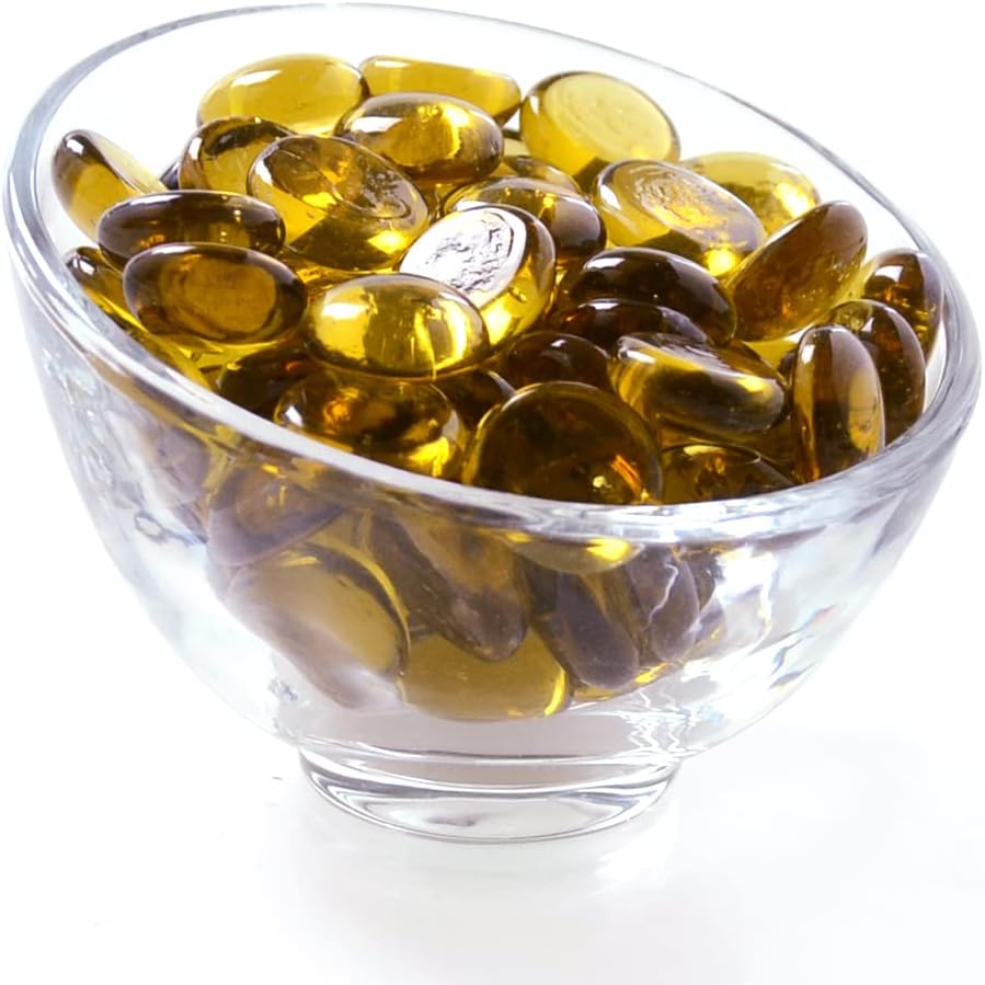 KINGOU Flat Glass Gems/Marbles/Stones/Beads for Vase Filler, Table Scatter, Games - 1 Lbs (17-19mm, Approx. 3/4") (Yellow, Standard)