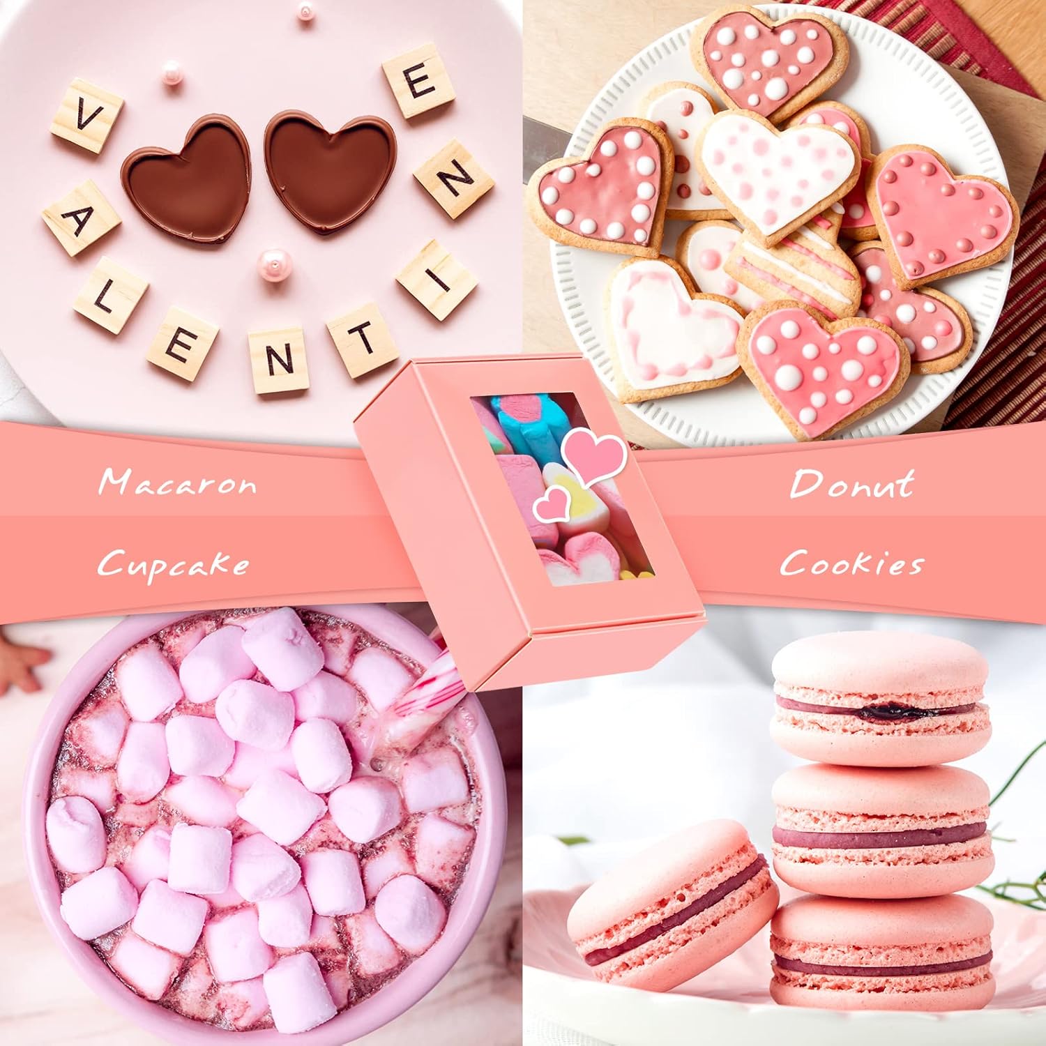 Zonon 30 Pcs Soap Boxes for Homemade Packaging, Mini Kraft Treat Boxes with Window for Bakery Candy Soap Making Gift Packaging(3.5 x 2.4 x 1.2 Inch,Pink)
