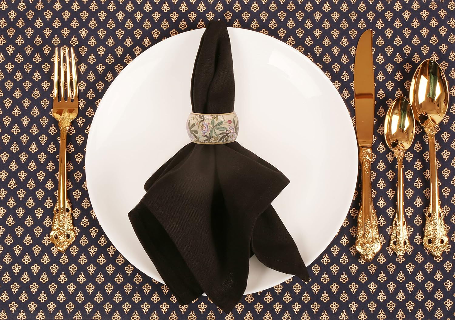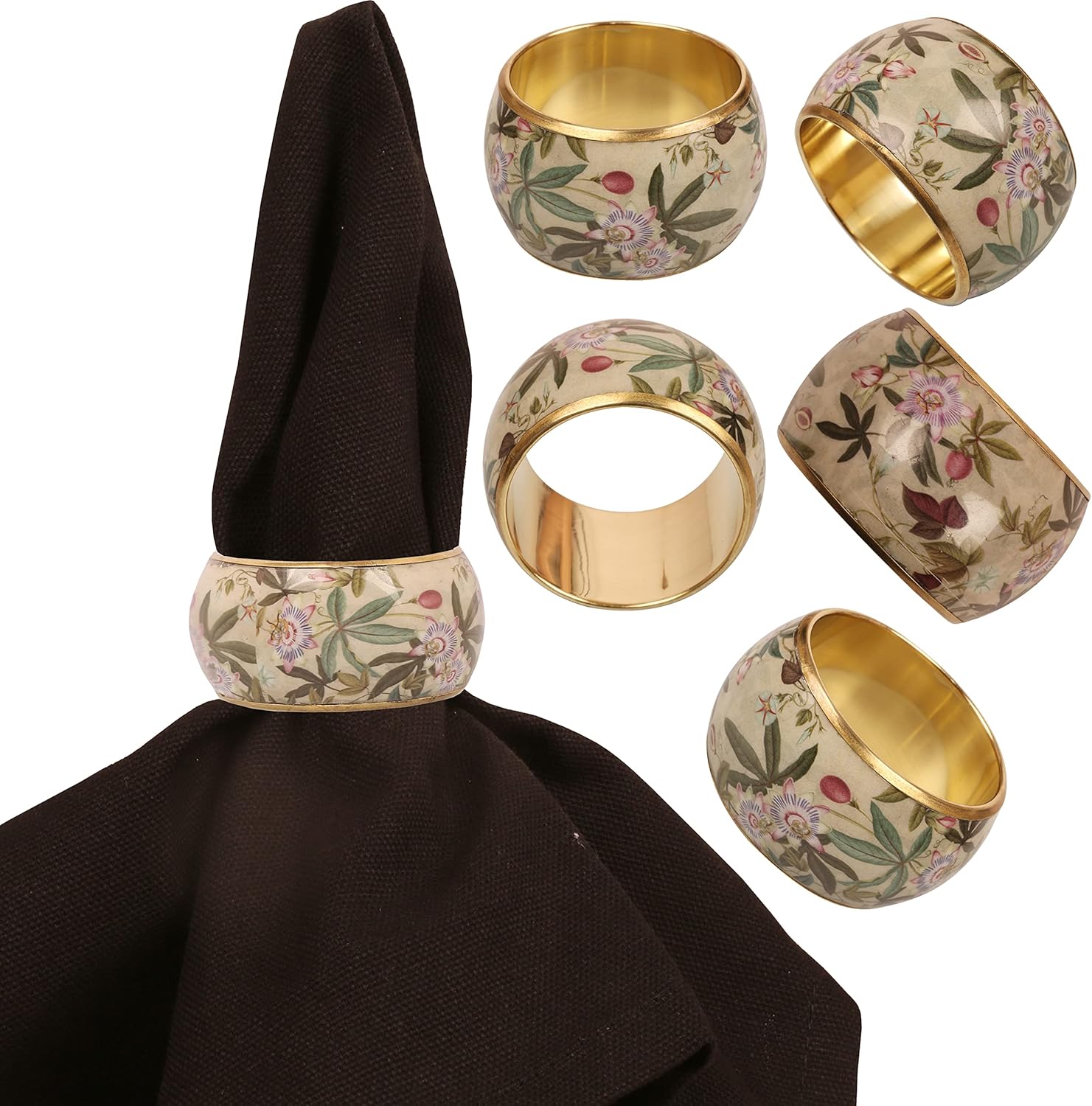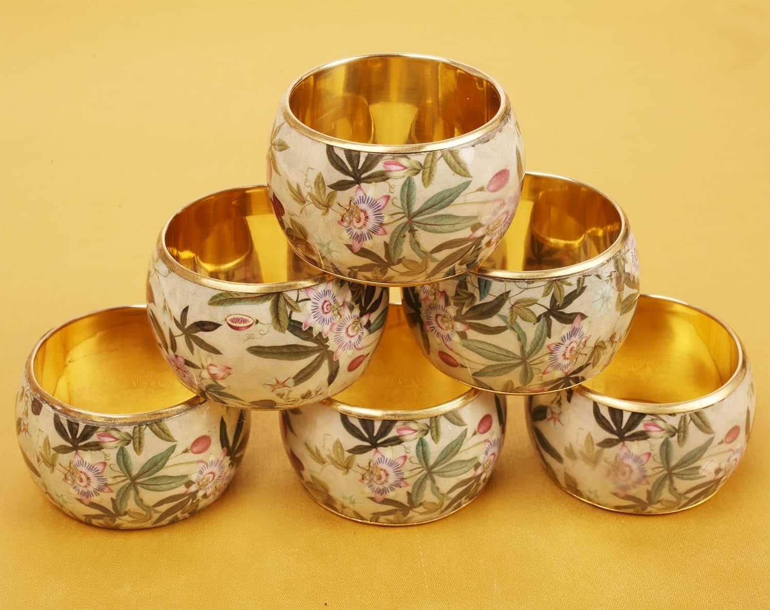 Gorgeous Beautifully Handcrafted Eye Catching Colorful Floral Petals Patterns Large Size Gold Tone Party Dining Table Napkin Holders (Set of 6)