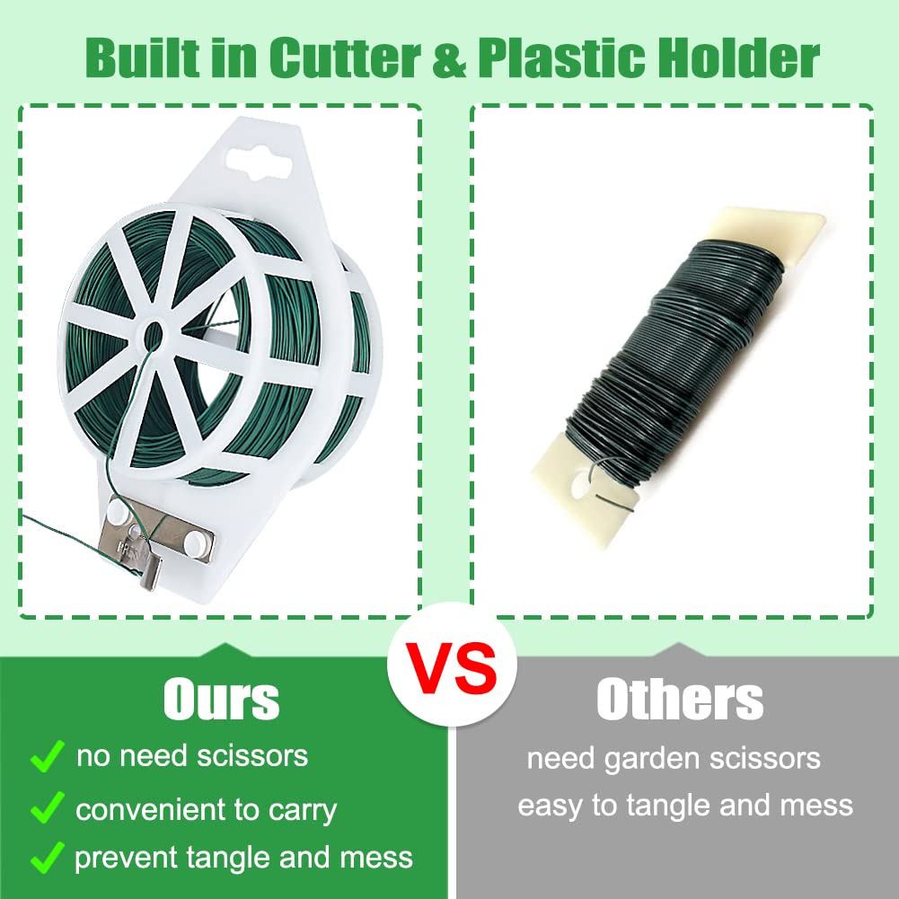 • 🌷Built-in Easy Cutter: No need garden scissor, a cutter built into the spool, easy to cut and make any size needed. Plastic fixed holder design makes our paddle wire no tangling and convenient to carry anywhere