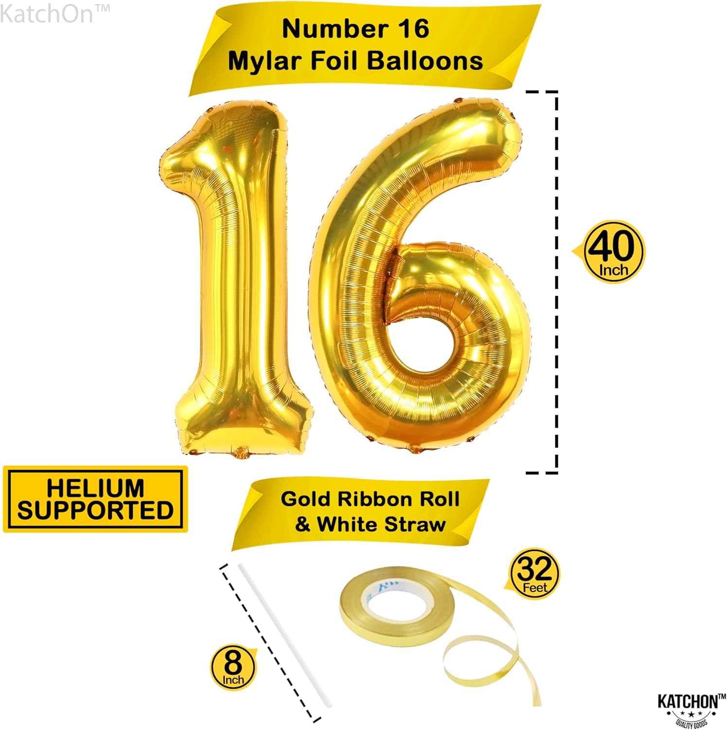 KatchOn, Giant Gold 16 Balloon Numbers - 40 Inch | Gold Number 16 Balloons for Sweet 16 Birthday Decorations | Gold Sweet 16 Balloons | Sweet 16 Balloons for Sweet 16 Party Decorations for Boys