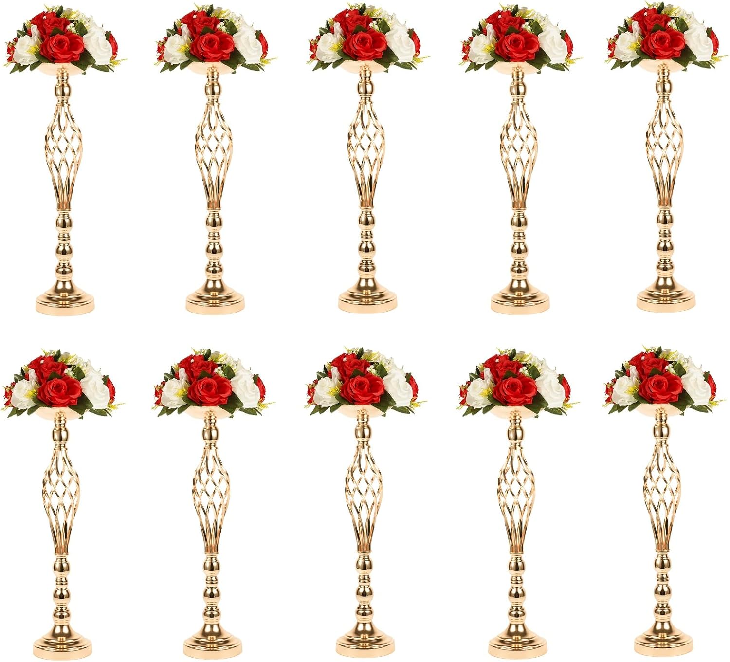 LANLONG 10pcs Metal Gold Candle Holders Road Lead Table Centerpiece Stand Pillar Candlestick for Wedding Candelabra Flowers Vases