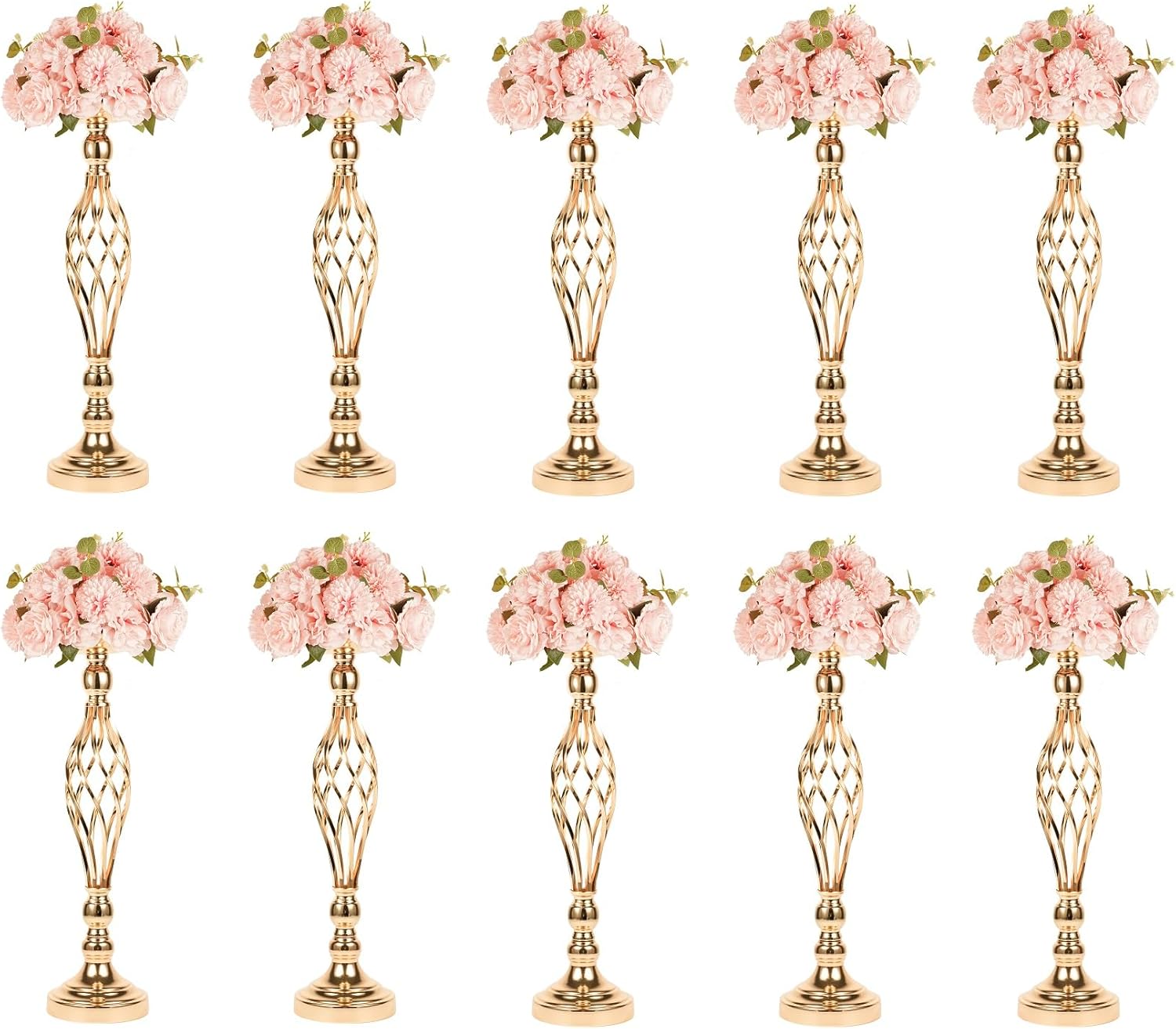 LANLONG 10pcs Metal Gold Candle Holders Road Lead Table Centerpiece Stand Pillar Candlestick for Wedding Candelabra Flowers Vases