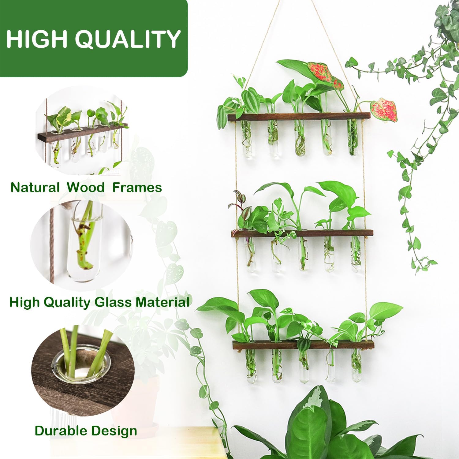 • Hanging Terrarium: Simple and elegant style test tube propagator suit anywhere. The three tiered wooden holder with 15 tubes maximizes space and hold more planindividuals cutttings, perfect for keeping cuttings neat and out of the way. It adds nice touch to your house, hanging it beside the window, wall for decoration in livingroom, dingroom, kitchen, dormitory and balcony.