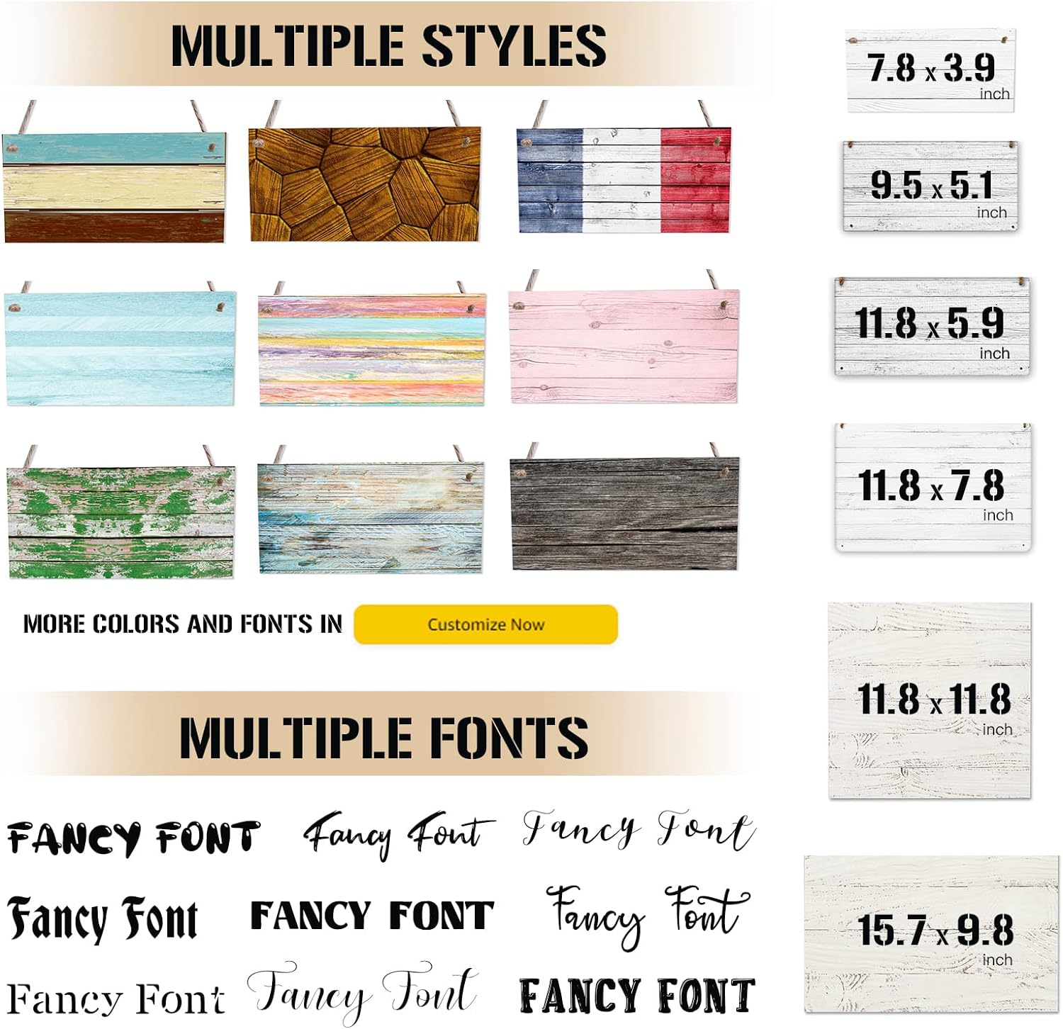 • 🟢Multiple Sizes and Backgrounds - We provide up to 100 different wood plank background colors, 20 different fonts and 50 font colors (in "Customize Now"), you can choose the one you like to design