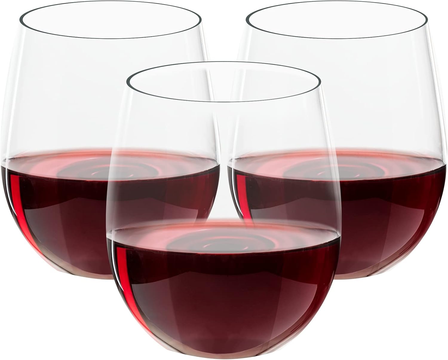 • Our clear stemless plastic wine glasses are heavy duty, unbreakable, shatterproof, disposable and reusable; High quality PET plastic makes the wine glass look crystal clear and adds a touch of ambiance to your party