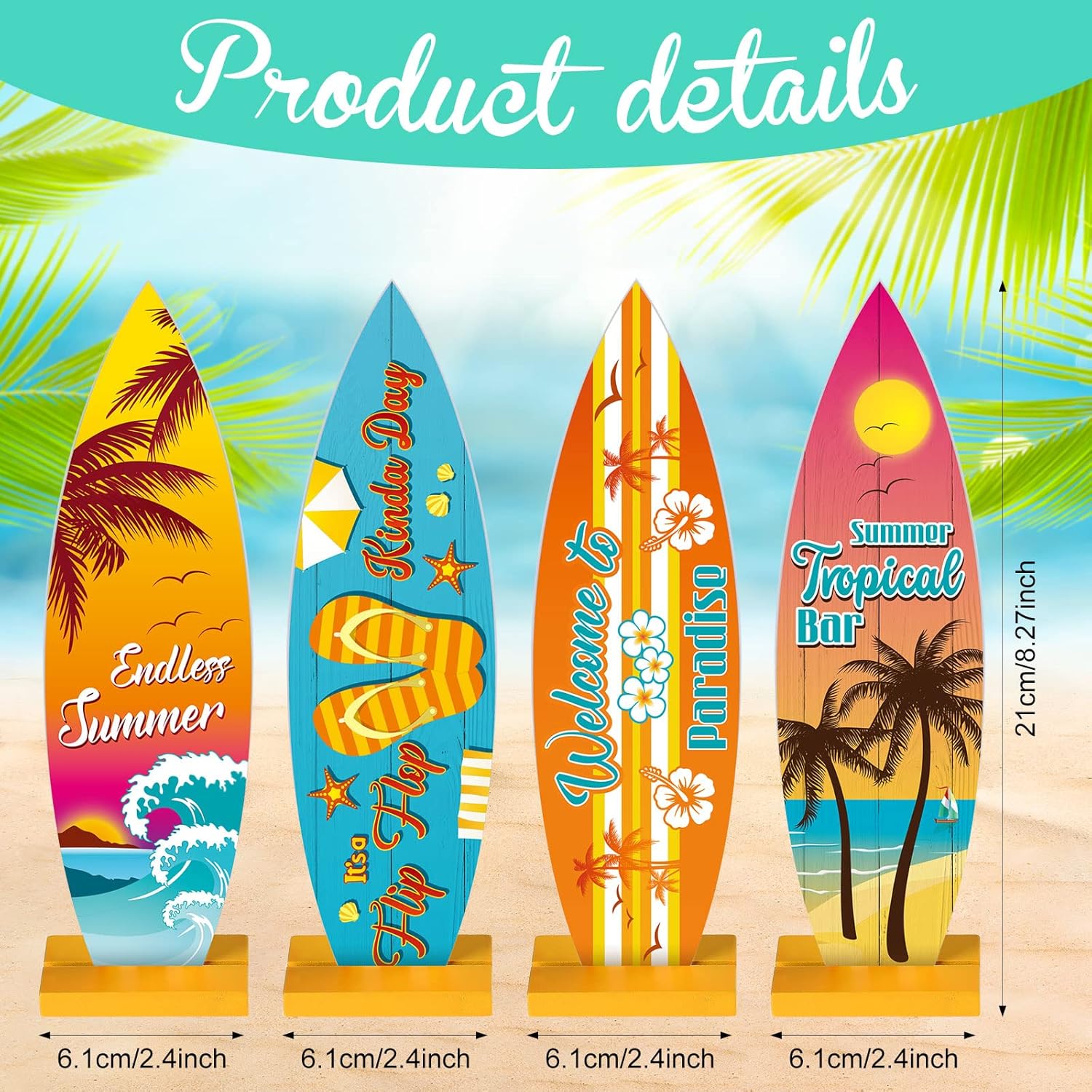 • Stylish Surfboard Table Decorations: these summer table centerpieces can be applied as cute surfboard table topper for beach parties, or you can put the surfboard beach decorations on the desk, counter, or send them to friends, daughter or son as a grad gift