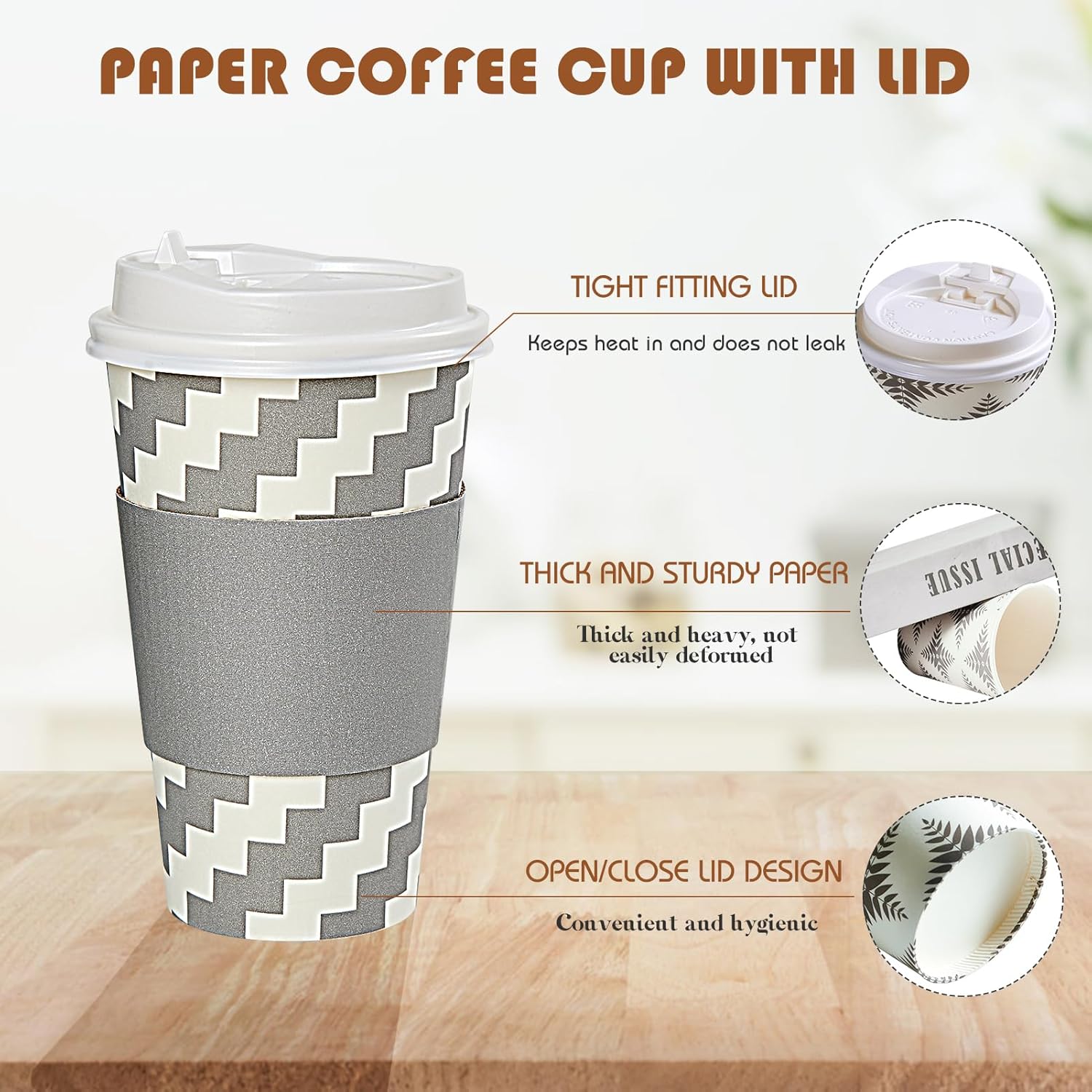• Leak Proof and Durable: We have designed drinking cups the lids to form a tight seal with the mouth of the cup to help prevent leaks and spills, and the matching cup sleeves will effectively prevent the release of heat and won't burn your hands