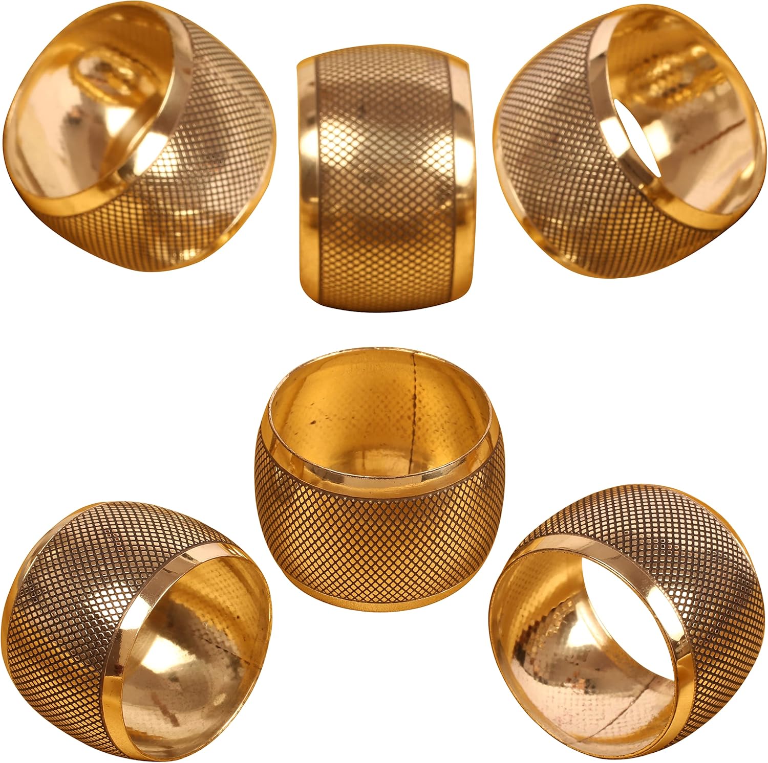 Brass Base Artistic Handcrafted Beautiful Tyre Round Shape Large Size Party Dining Table Napkin Holders in Antique Gold Tone. (Set of 6).