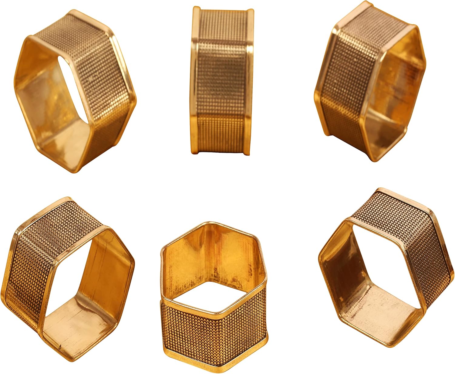 Brass Base Artistic Handcrafted Beautiful Geometric Hexagon Shape Large Size Party Dining Table Napkin Holders in Antique Gold Tone. (Set of 6).