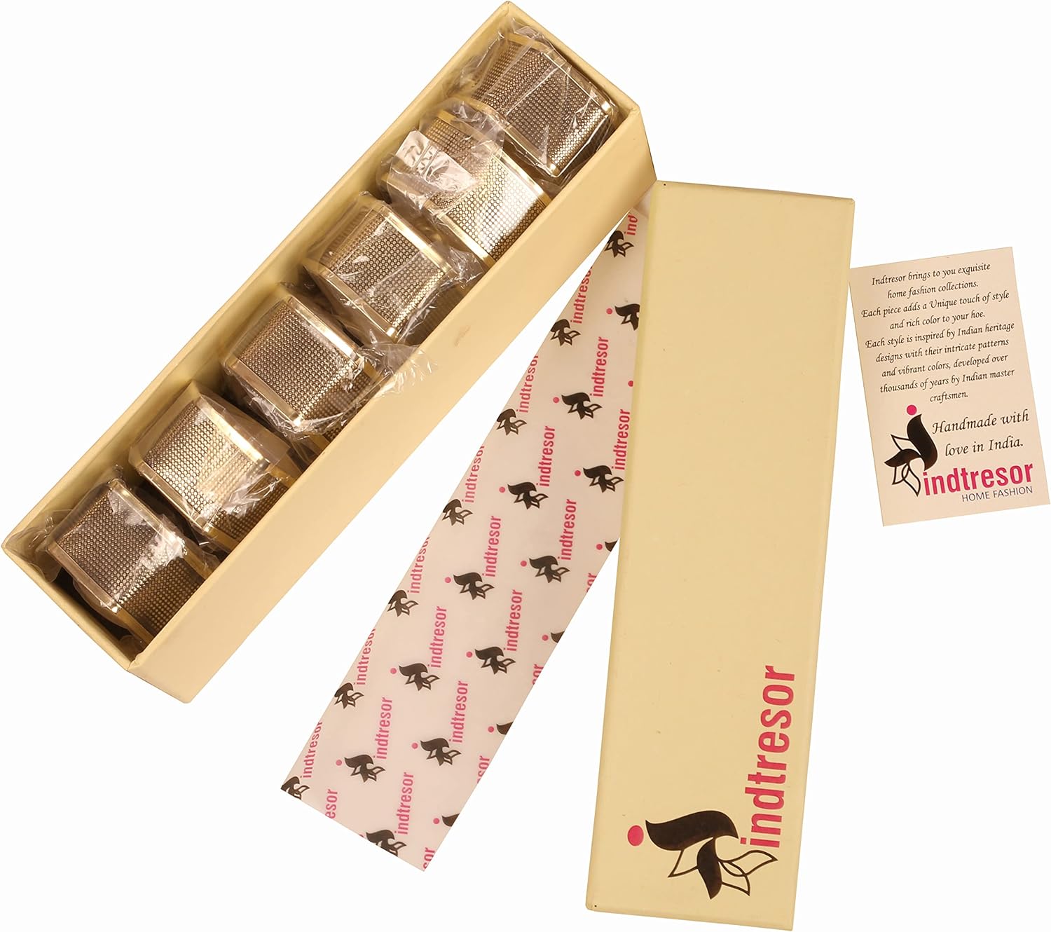 • Gold Handcrafted Large Size Napkin Holders. Set Of 6. Handcrafted In Exquisite Detail. Long Lasting Plating.