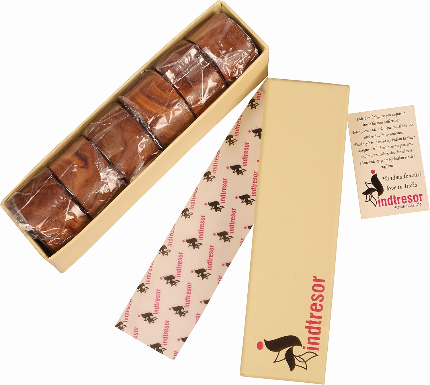 Beautifully Handcrafted Natural Wood Round Shape Large Size Party Dining Table Napkin Holders in Natural Tone. (Set of 6).
