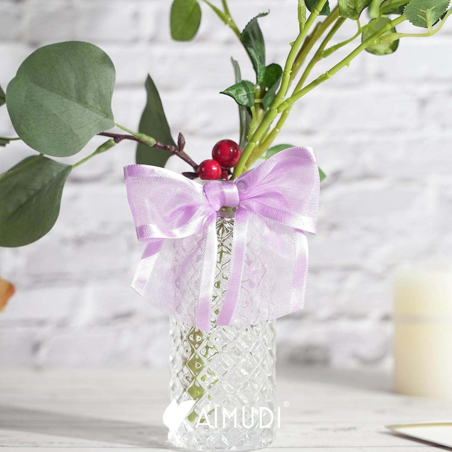 AIMUDI Purple Bows for Crafts 4" Lavender Bows with Twist Ties Premade Lilac Bows Pre Tied Organza Bows for Treat Bags, Easter's Day, Cake Pop,Gift Wrapping,Baby Shower,Wedding Favor -12 Counts