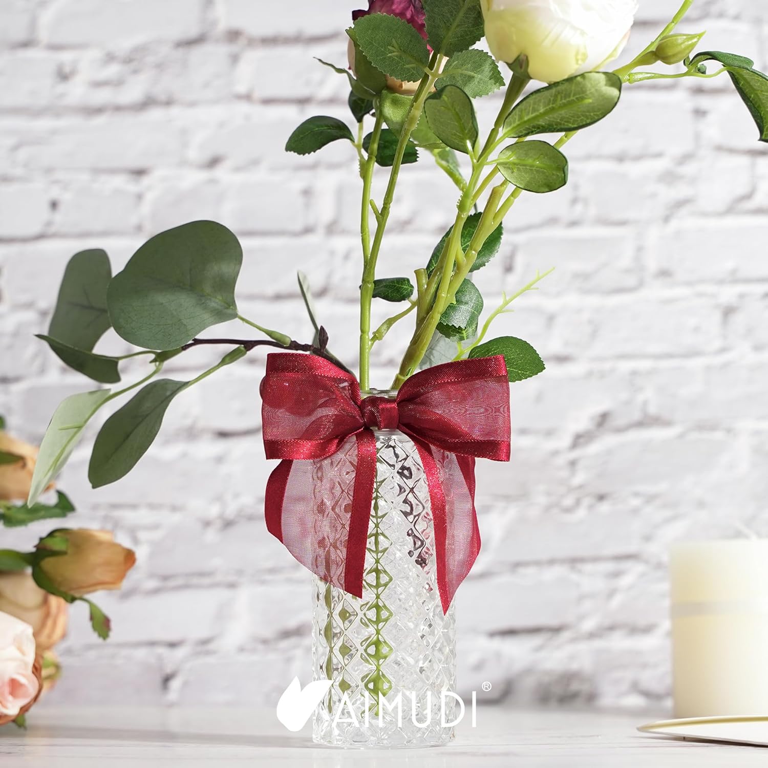 • PRETIED RIBBON BOWS- Decorative bows is made of 1-1/2'' burgundy organza satin edge ribbon with romantic transparency and glossy lustre, easily adding a elegant final touch to your party favor, cake pop bags, gift basket