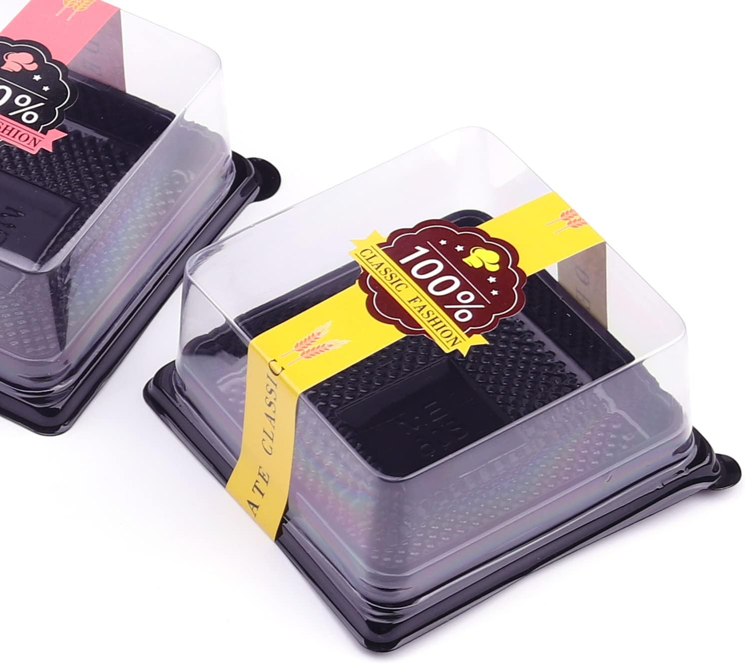 • Disposable, Safe, Durable- The mini cake boxes are made of high quality food grade plastic material, odorless, tasteless and safe to use. The plastic cake box can keep your desserts in clean and fresh condition for a long time