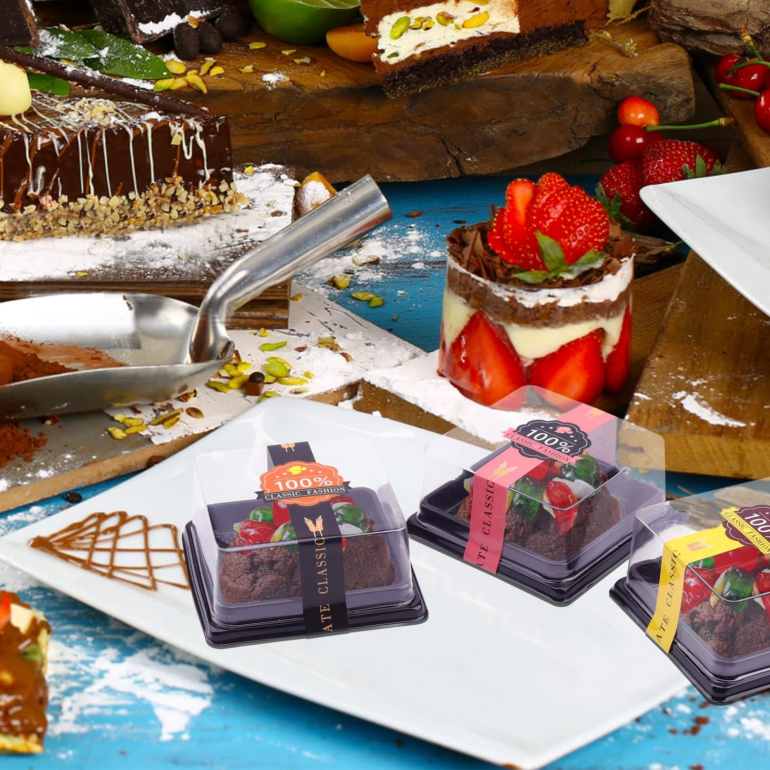 • Great Value Mini Cupcake Containers- You will receive 50 sets clear plastic mini cake boxes muffin holders and 50 pcs long sealing stickers, you can tape the stickers onto the container for securely closure, it also add a decorative touch to the mini cake box