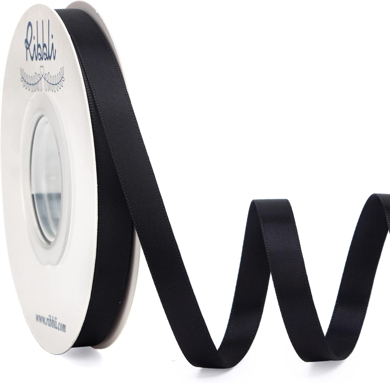 Ribbli Double Faced Black Satin Ribbon,3/8” x Continuous 25 Yards,Use for Bows Bouquet,Gift Wrapping,Floral Arrangement