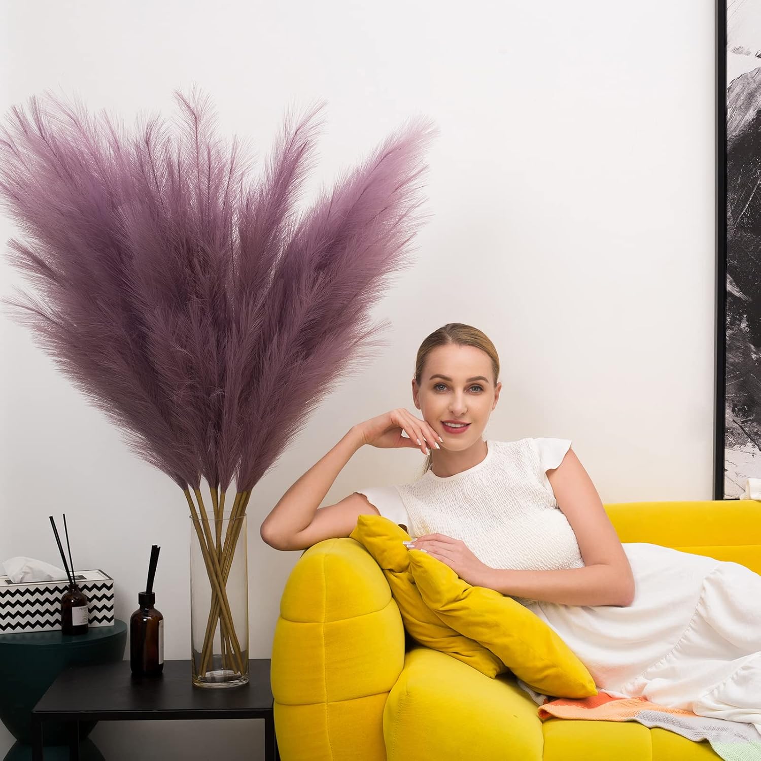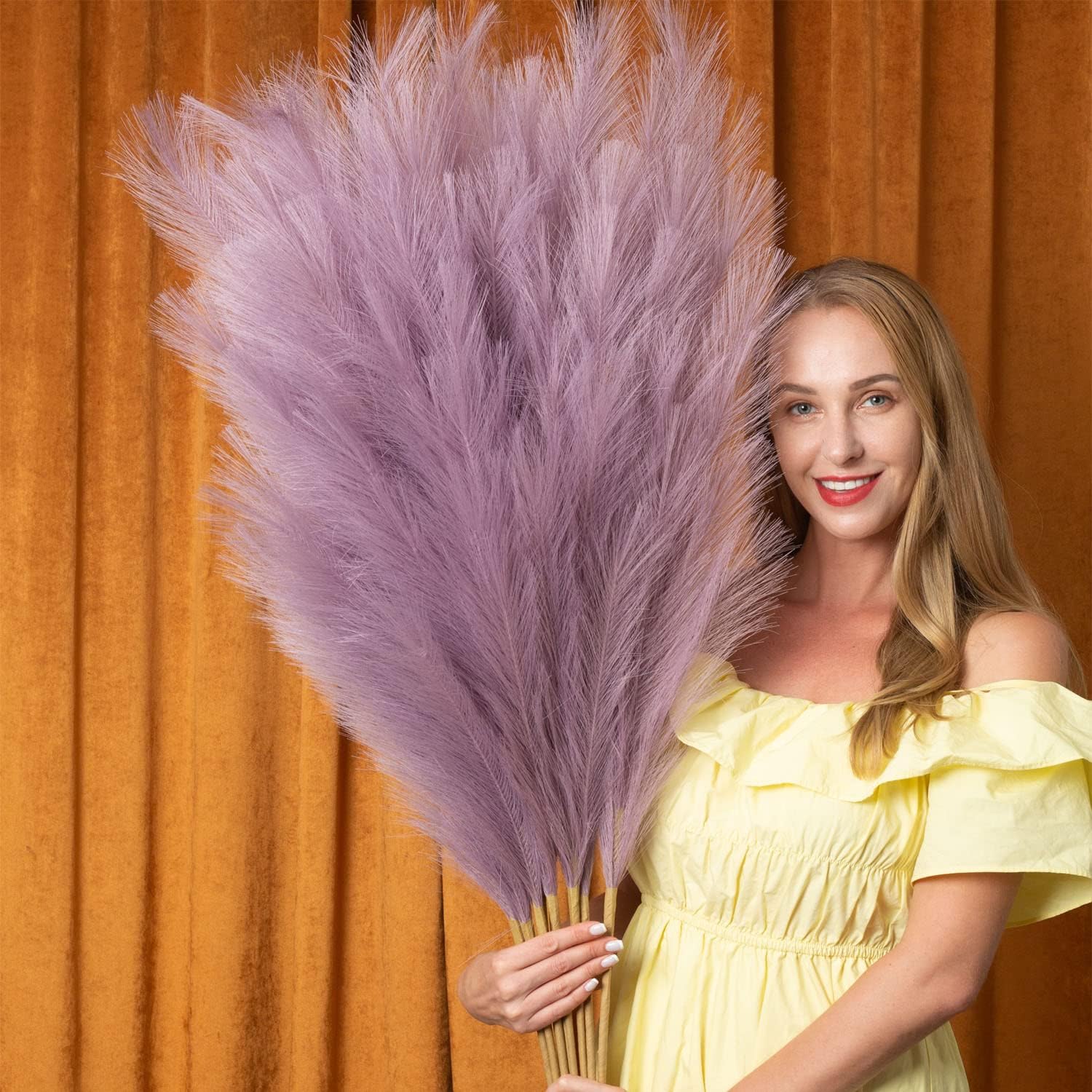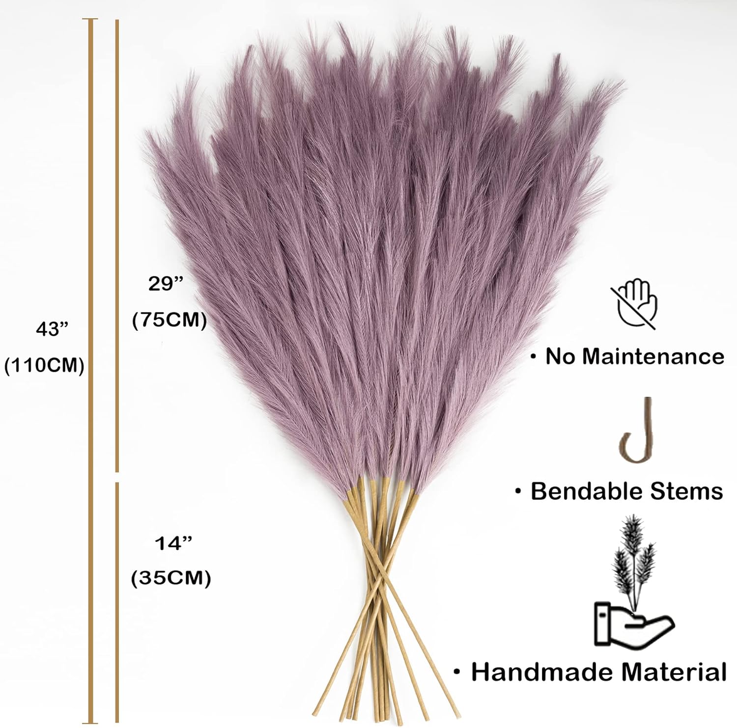 EVODIS Pampas Grass Decor Tall, 43"/110cm Faux Pampas Grass 6 Stems Large Pompass Grass Branches Tall Bulk Boho Flower Arrangement for Home Room Wedding Party Decor (Light Purple)