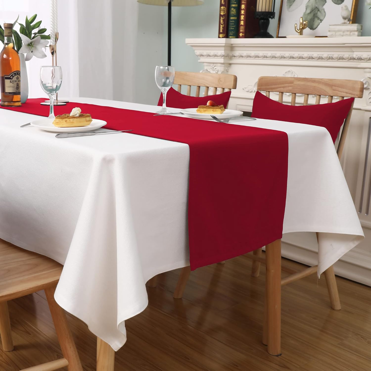 DUALIFE Red Table Runner 14 x 72 inch Divine for Valentines Day Mother's Day Wedding Holiday Dining, Natural Fabric Handcrafted Dresser Scarf Banquet Catering Services Event 1 Piece
