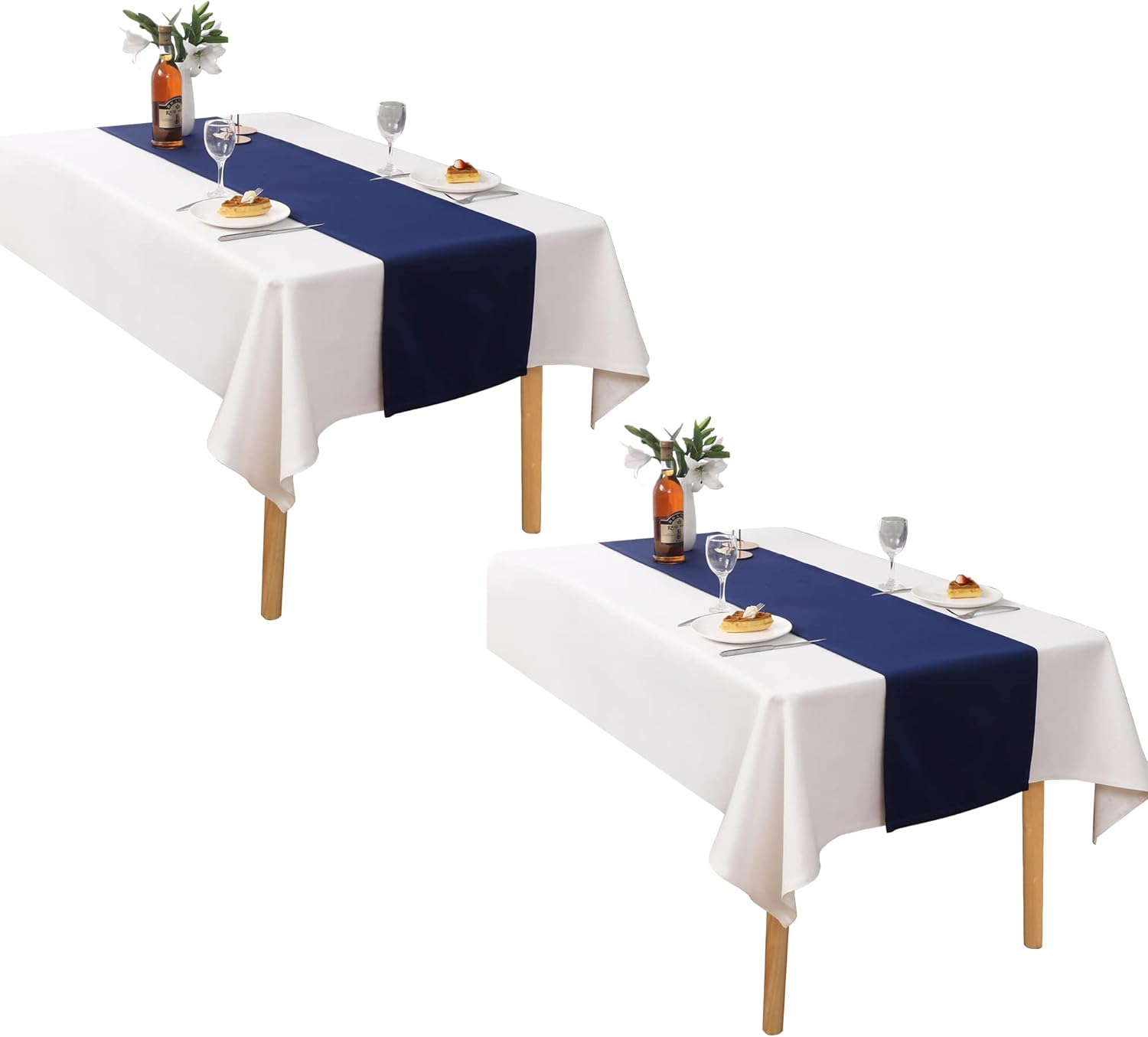DUALIFE Navy Table Runner 14x72 inch Solid Color Thick Polyester Decorative Cloth Handcrafted for Wedding Party Birthday Graduations Hotel Restaurant Banquet Catering Services Event 2 Pieces