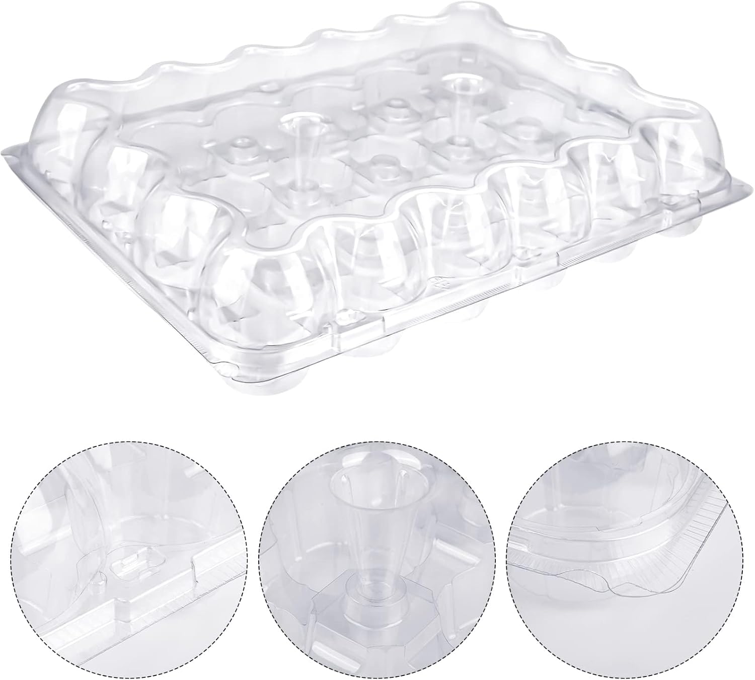 • 24 counts cupcake containers: The cupcake containers made of clear plastic and cupcake boxes are sturdy enough for multiple uses, cupcake holder have the bottom and tops separated, very handy to holder cupcakes. Work very well with all your cupcakes needs