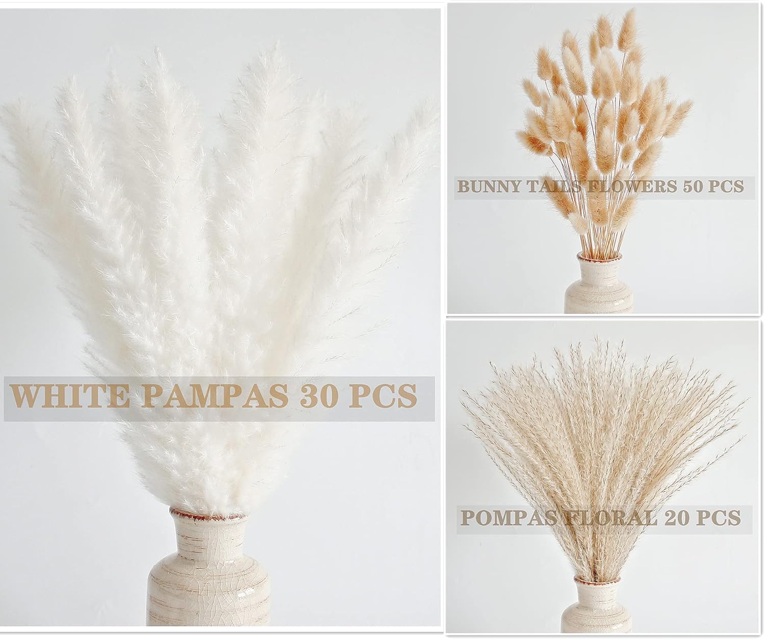 • More then one kind of pampas grass bouquet: carefully selected natural dried pampas grass decor, try to avoid deformation and breakage of dried pampas grass, 100 pieces of pampass grass contain 50 small pampas grass, 20 reed grass, 30 white pampas grass decor, (pampas grass vase not included) fill your vase, you can match it with different dried pompas floral bouquets according to your preference