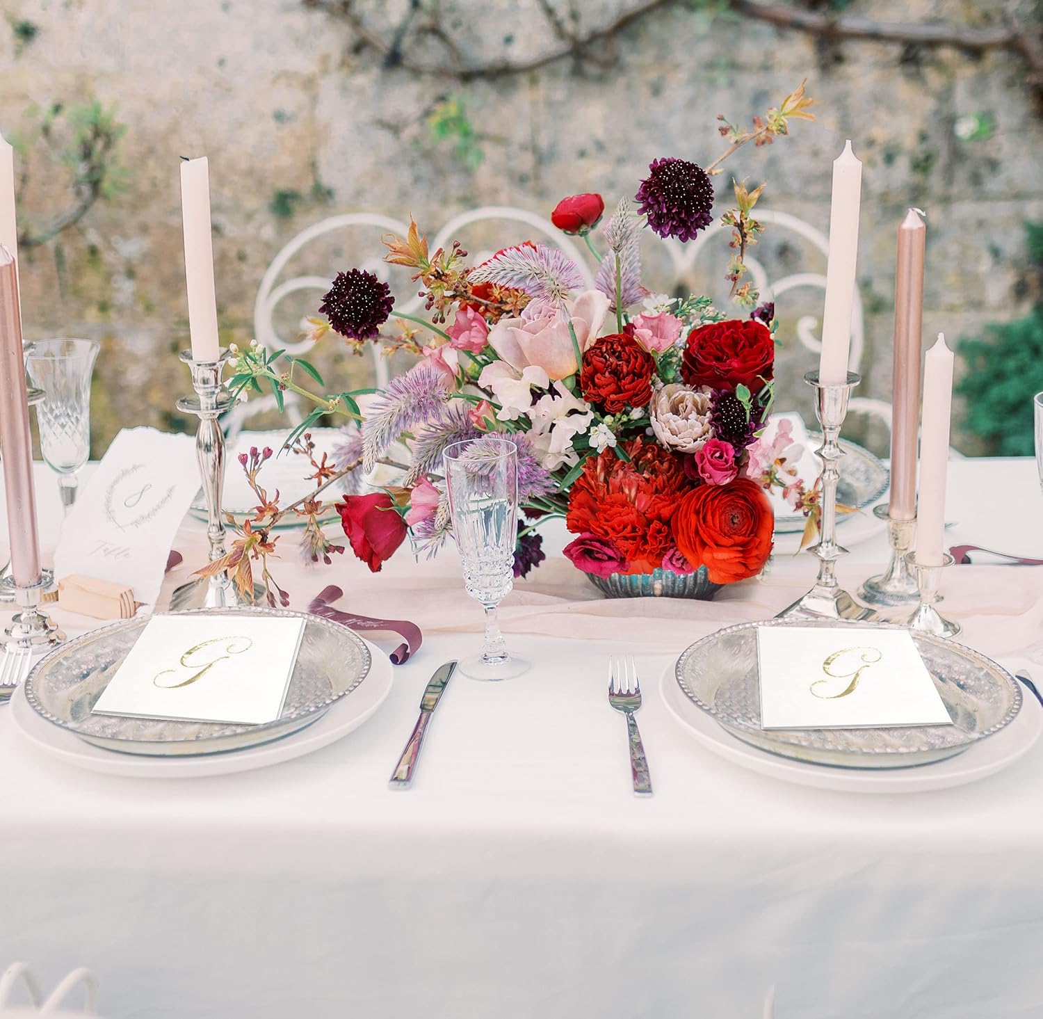 • Monogrammed Cocktail Napkins Serve 100: Gift Boutique square monogram cocktail napkins features the letter G printed in gold foil on white. These napkins will definitely enhance your table and impress your guests. These are essential for providing guests high-end comfort and luxury. Measures: 5" x 5" folded and 10" x 10" unfolded.