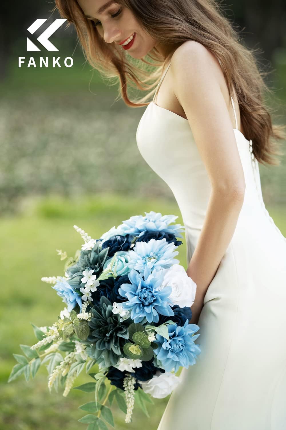 • ❤️ 【27Pcs in Package】Our artificial flowers combo includes: Dusty Bule Semi-Cactus Dahlia x 1(5.5"), Dusty Sky Bule Semi-Cactus Dahlia x 2(4.5"), Sky Bule Semi-Cactus Dahlia x 2(4"), Navy Bule Rose x 7(3.5"), Light Bule Rose x 3(3.5"), White Rose x 2(3.5"), Little Delphinium x 9(1.25"), Wheat Ears Flowers x 3, Eucalyptus Stems x 2, Nandina Plants x 2. [Notes: Ribbons are not included. Colors may vary slightly due to differences in monitor settings.]