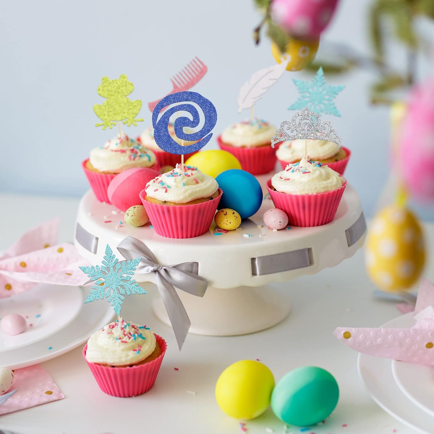 • 🧁These glitter Princess Cupcake Toppers are so cute and good for princess crown theme party, baby shower theme party,kids birthday party cupcake decorations. They can make your cupcake more attractive and bring the fun to your party. You can also apply them for ice cream, fruits, cookies and other desserts.