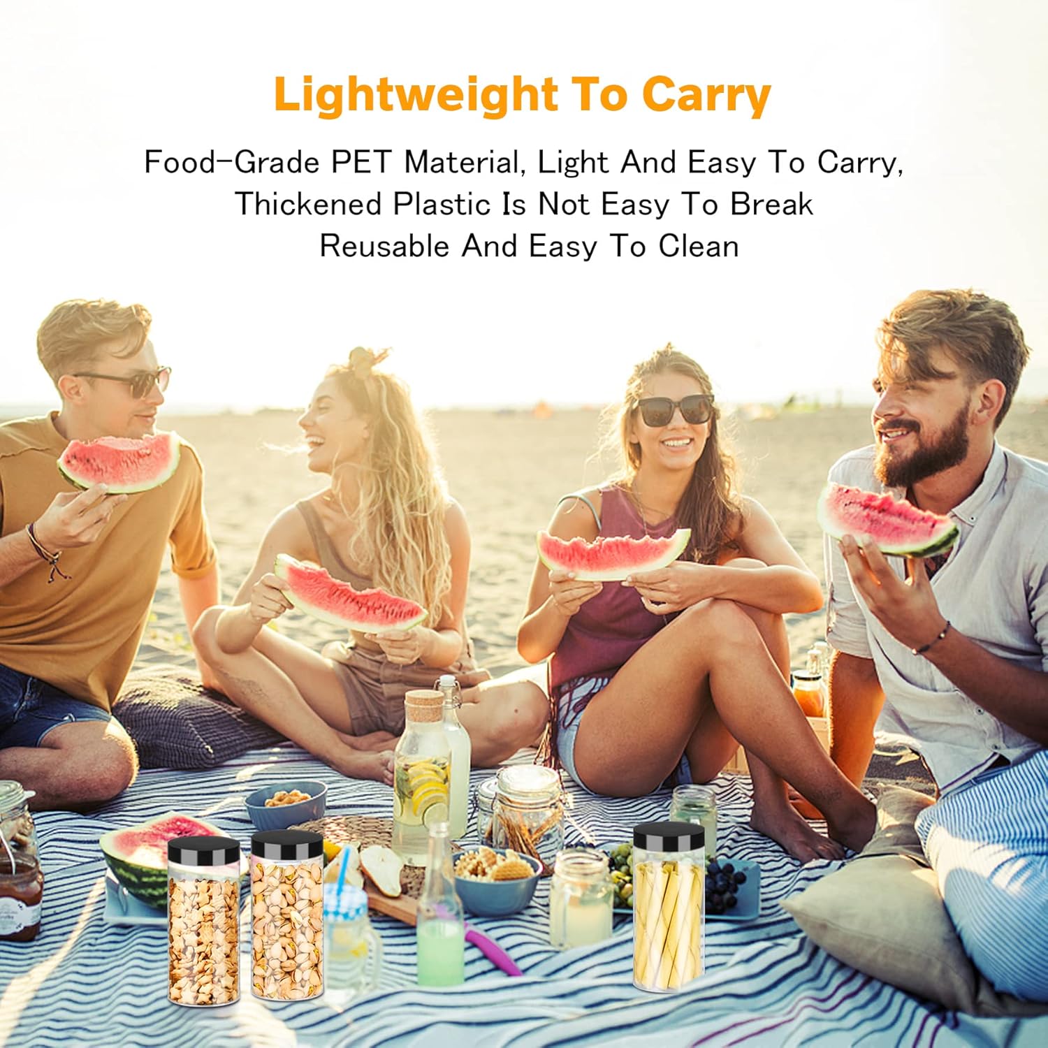 • 【 High-Quality Material】This plastic jars with lids are made of high-quality food-grade PET plastic, sturdy, durable, reusable, transparent and lightweight. You can safely use these empty jars to fill your food without worrying about the effects of the jars, these food jars will meet your needs for your food storage, just put your favourite food in them. NOT DISHWASHER SAFE.