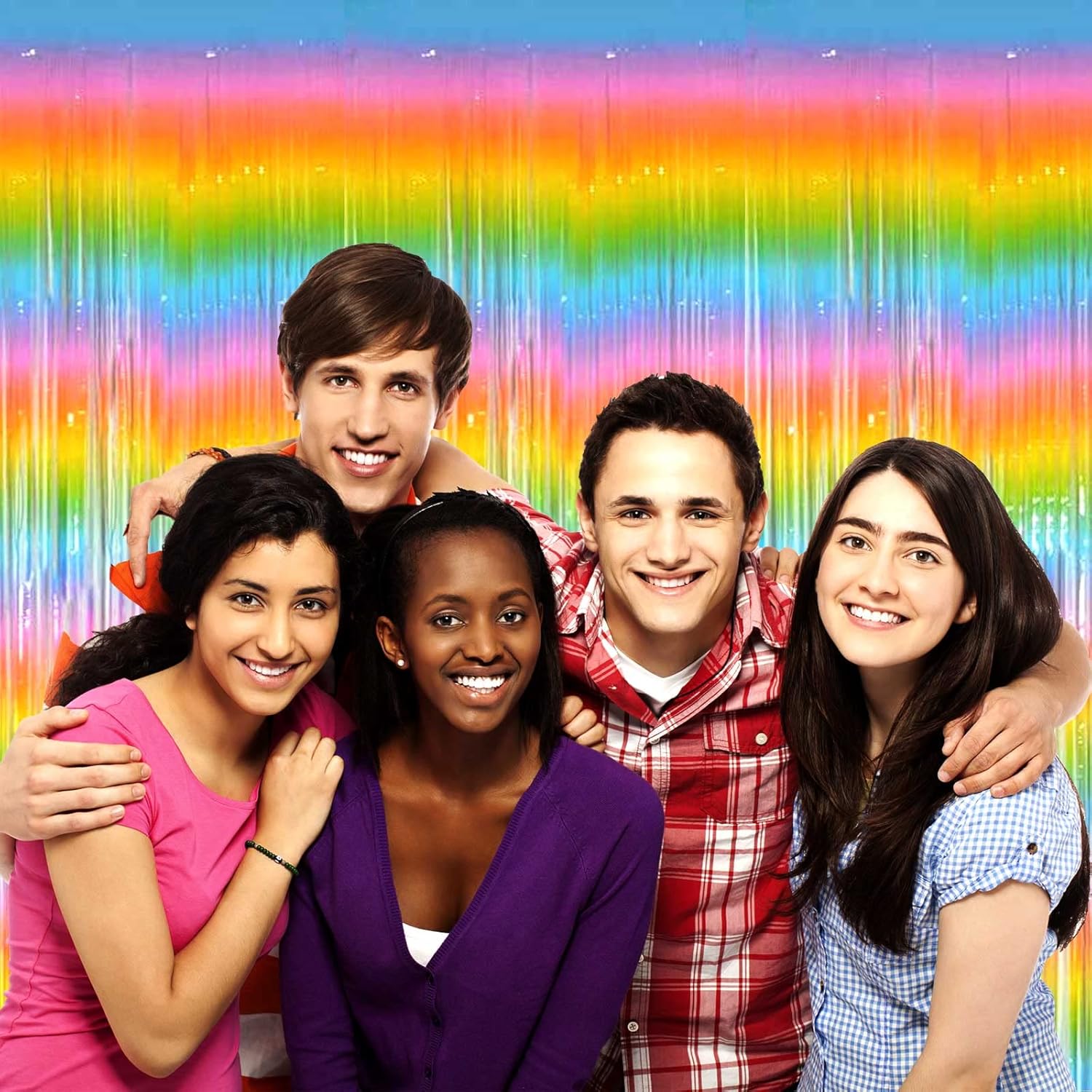 4 Pack Macaron Rainbow Foil Fringe Curtain Backdrop, 3.28Ft x 8.2Ft Metallic Tinsel Foil Fringe Streamer Curtains for Photo Booth, Birthday, Wedding, New Year’s, Easter Decorations Party Supplies