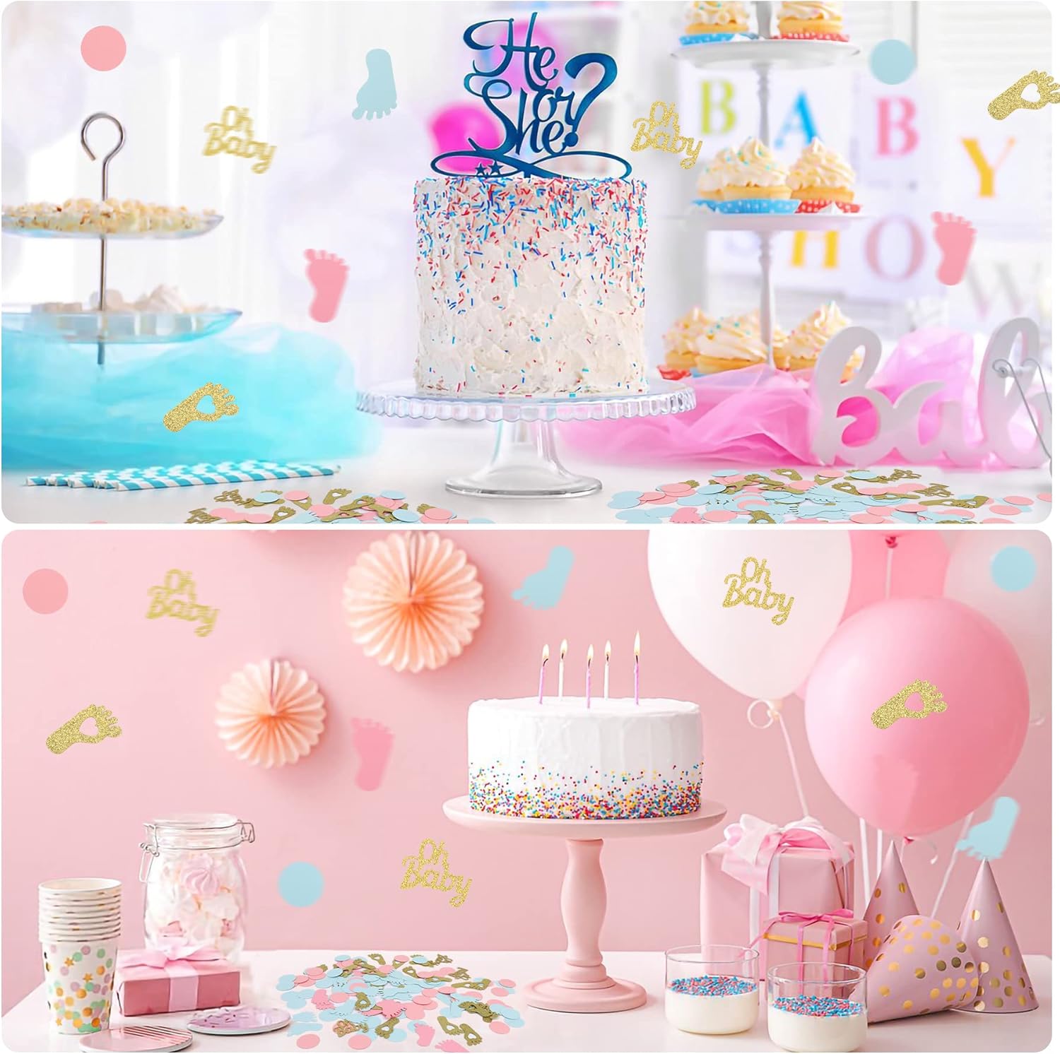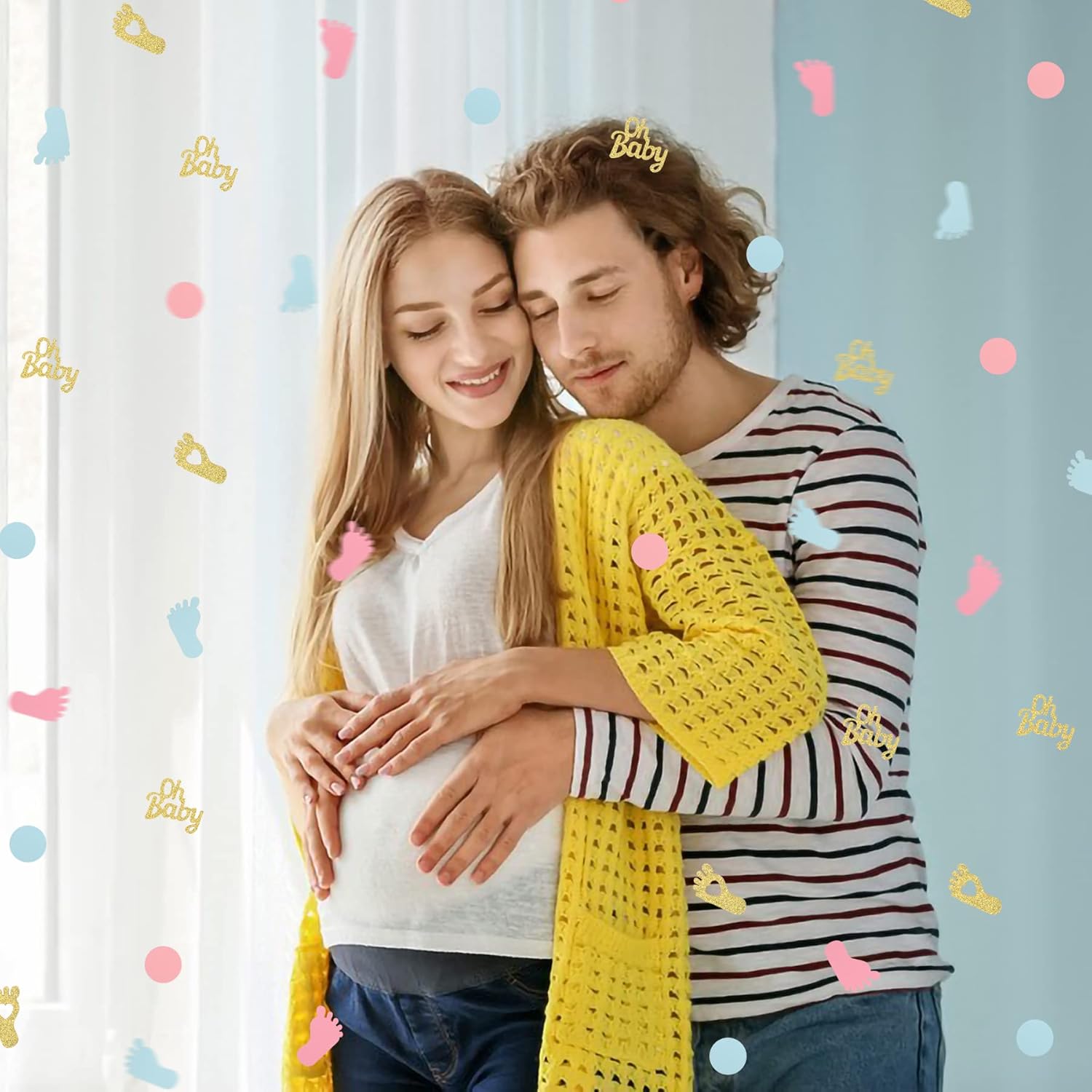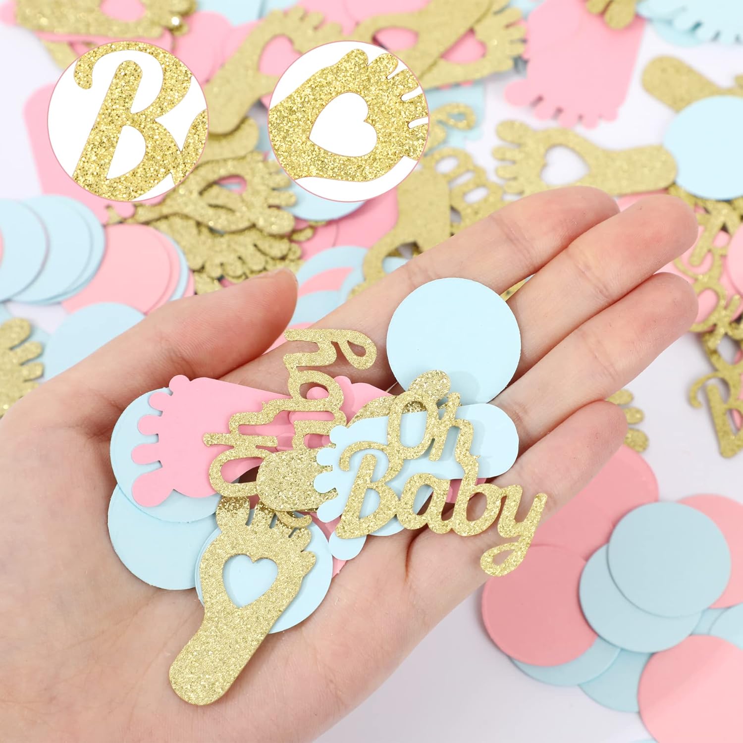 MARFOREVER 350 Pieces Gender Reveal Confetti Baby Shower Decoration Pink Blue Gold Round Glitter Confetti Oh Baby Footprints Table Paper Confetti for Gender Reveal Party Table Wedding Decor