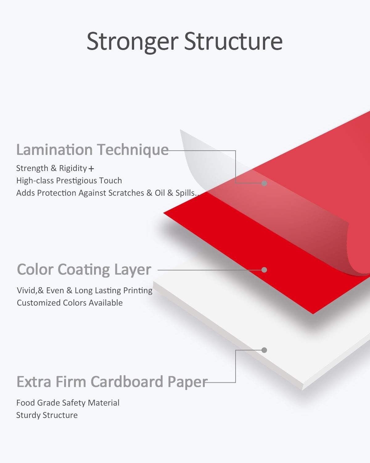 • High Quality:We adopt superior raw material only,and our box quality through the food safty quality text(FDA).Most of the paperboard after printing that you will find inferior Material will give a unhealthy smell, and it will fade after quick friction,Especially pink and black. Our paper was crafted from sustainably sourced, FSC-certified forest, (FSC-C215221) ensuring an eco-friendly choice for your home .